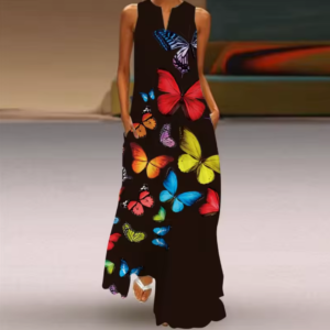 Boho Sleeveless Maxi Dress with Pockets – Loose Fit Summer V-Neck Dress