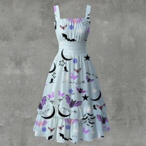 • Spooky Cute Bat & Butterfly Sundress – Moon Star Ruffle Hem Dress $65.99