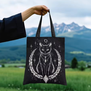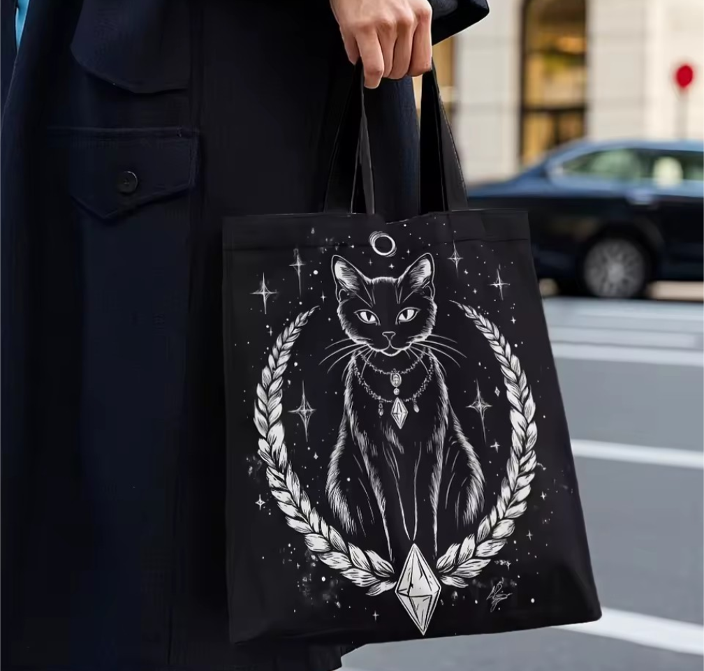 1pc Stylish Black Cat & Crescent Moon Tote Bag