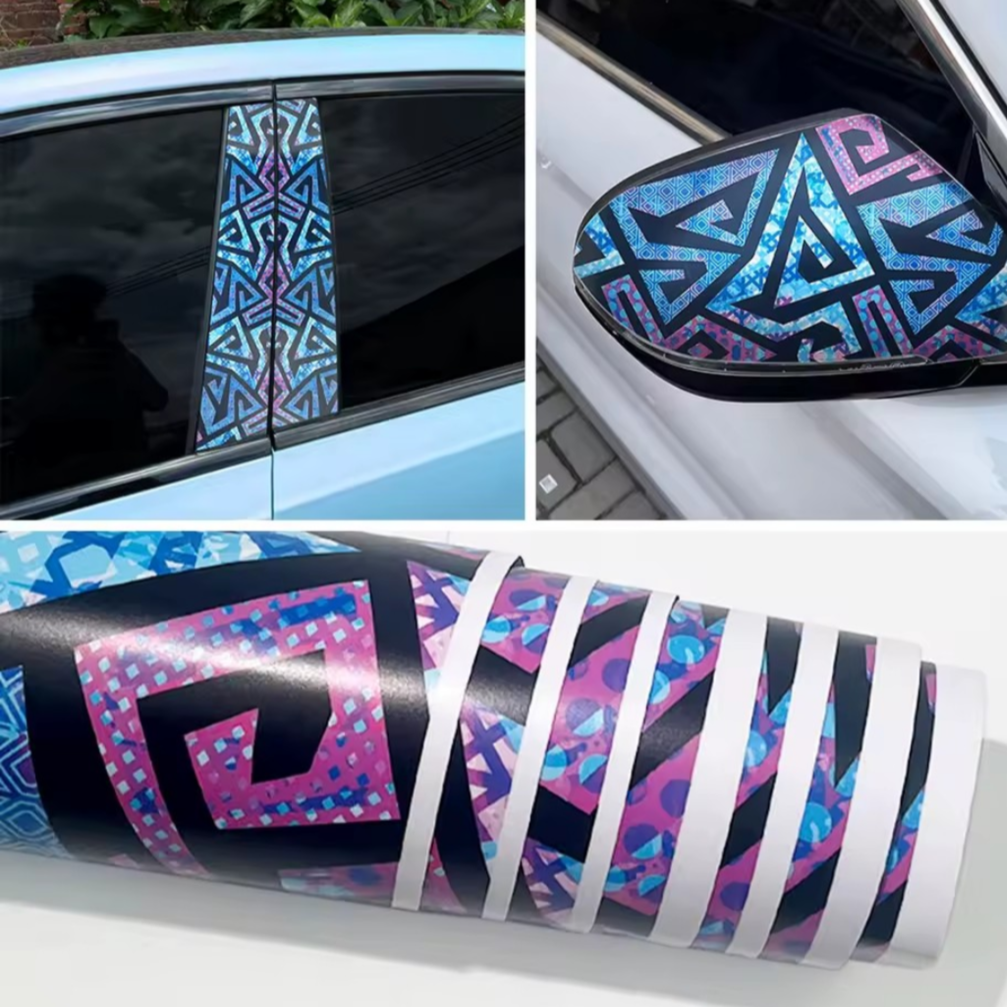 Upgrade your ride with this geometric air-release vinyl wrap — waterproof, bubble-free, and built for DIY customization. Perfect for car pillars, mirrors, fuel doors, scooters, motorcycles, helmets, and more. The air-release adhesive makes installation smooth, reduces bubbles, and keeps your vehicle looking clean and stylish. yonder.