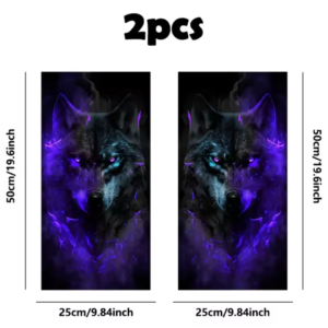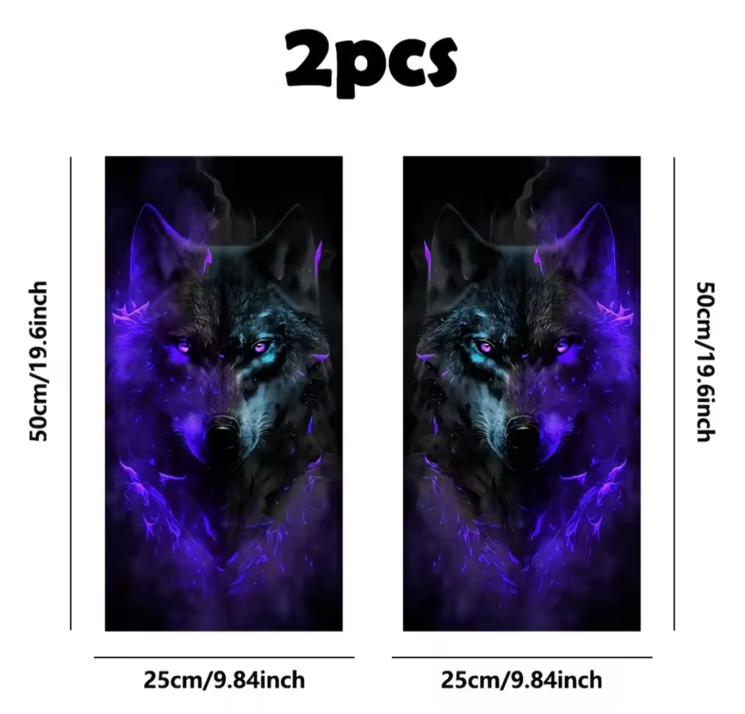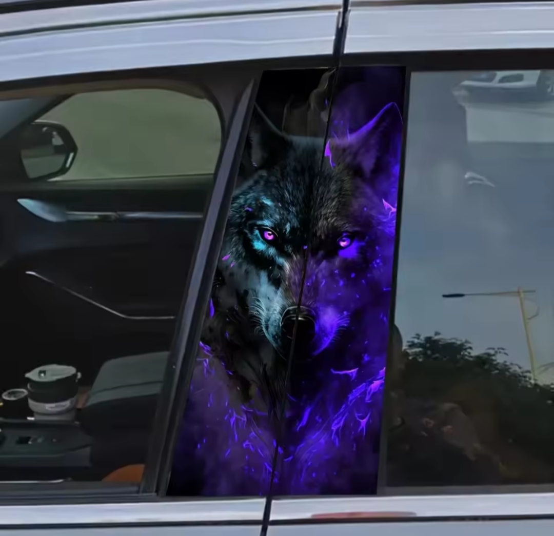 2-Piece Vinyl Cosmic Wolf Decal Animal Theme B-pillar Glossy Car Sticker for Vehicle Decor