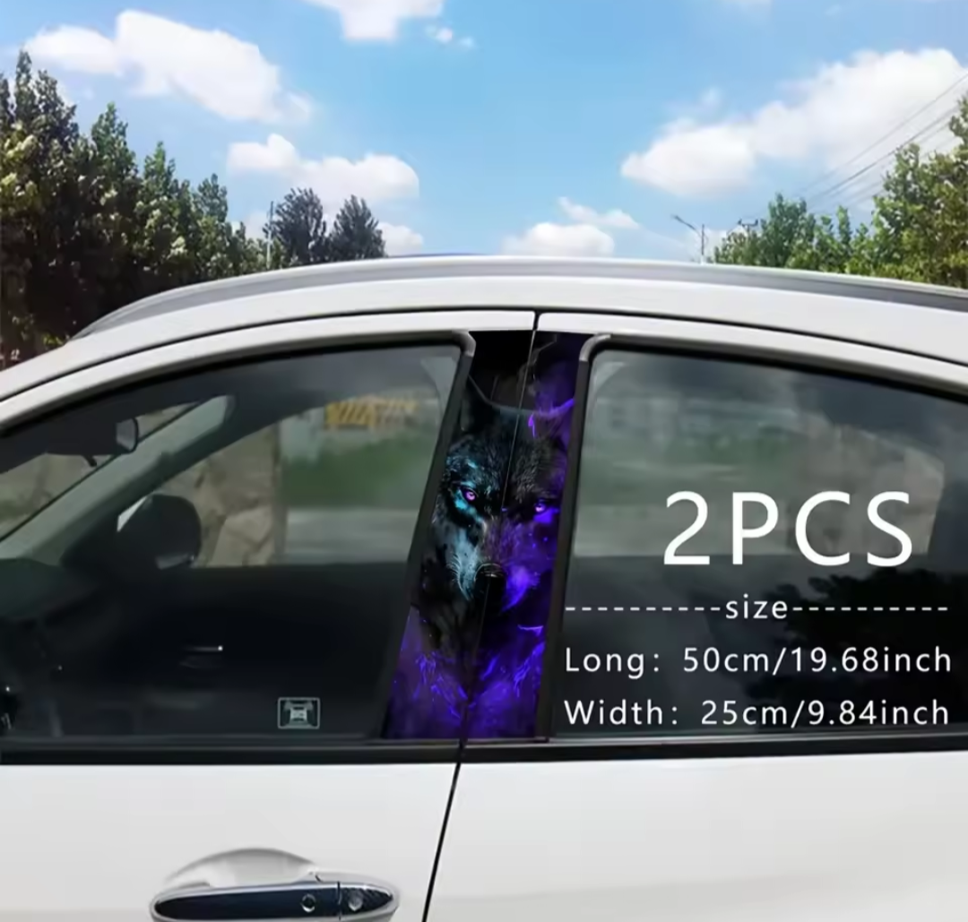 • 2-Piece Vinyl Cosmic Wolf Decal Animal Theme B-pillar Glossy Car Sticker for Vehicle Decor $27.89