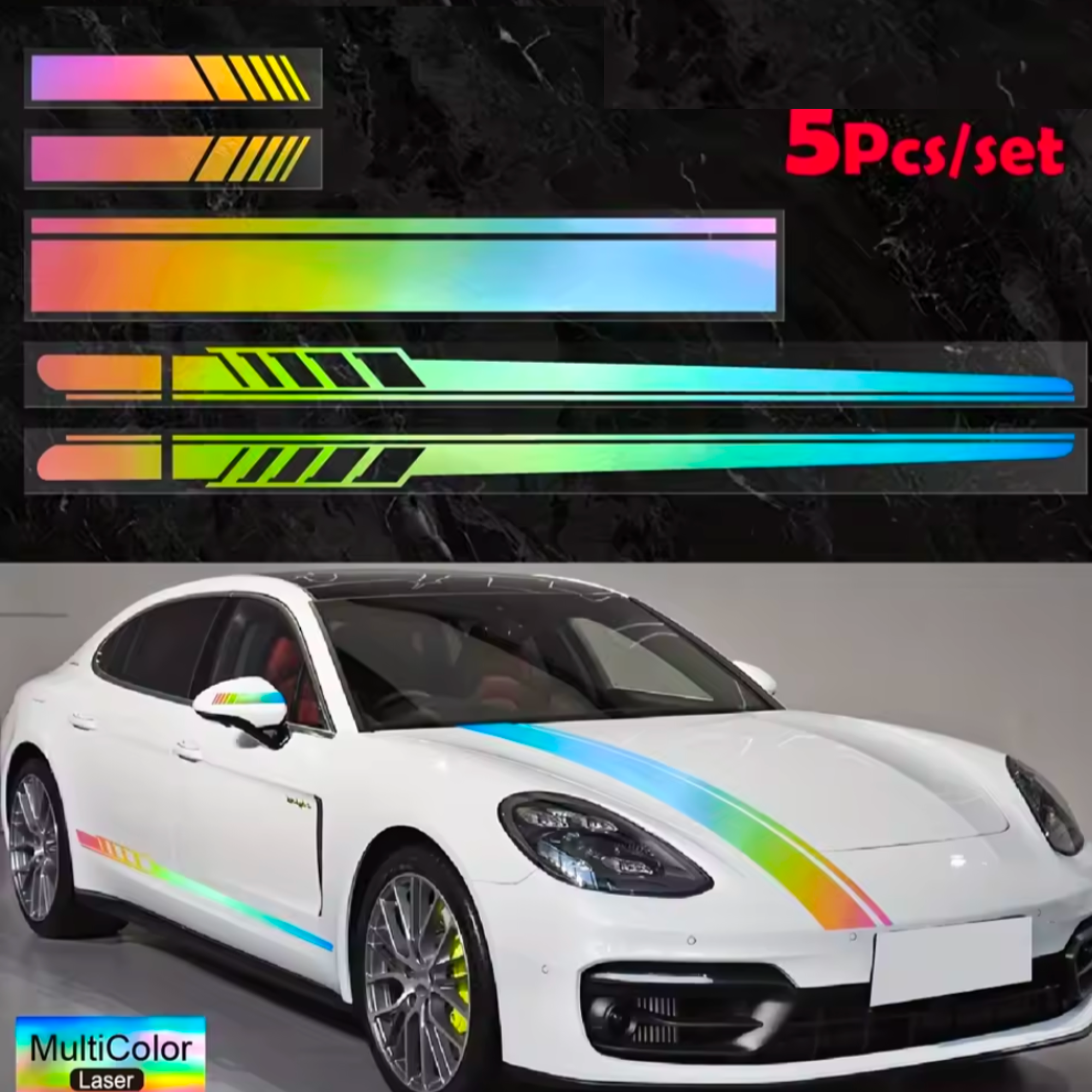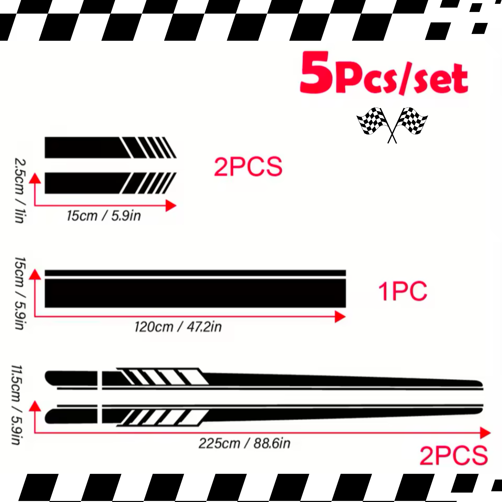 5pcs Racing Stripe Vinyl Decal, Car Hood & Body Sticky With Mirror Decals