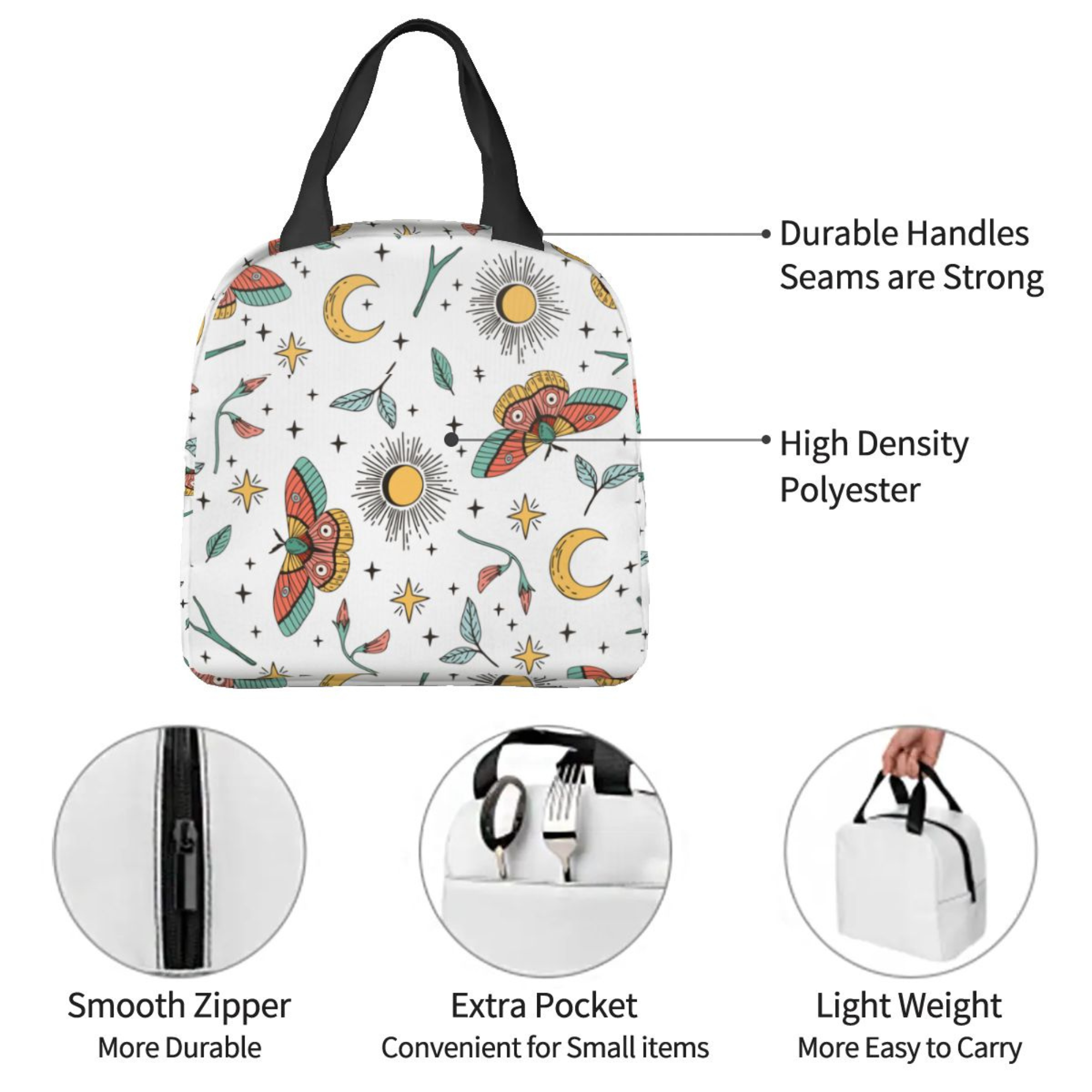 Boho Butterfly Moon Fun Portable Foil Insulated Lunch Box(NEW)