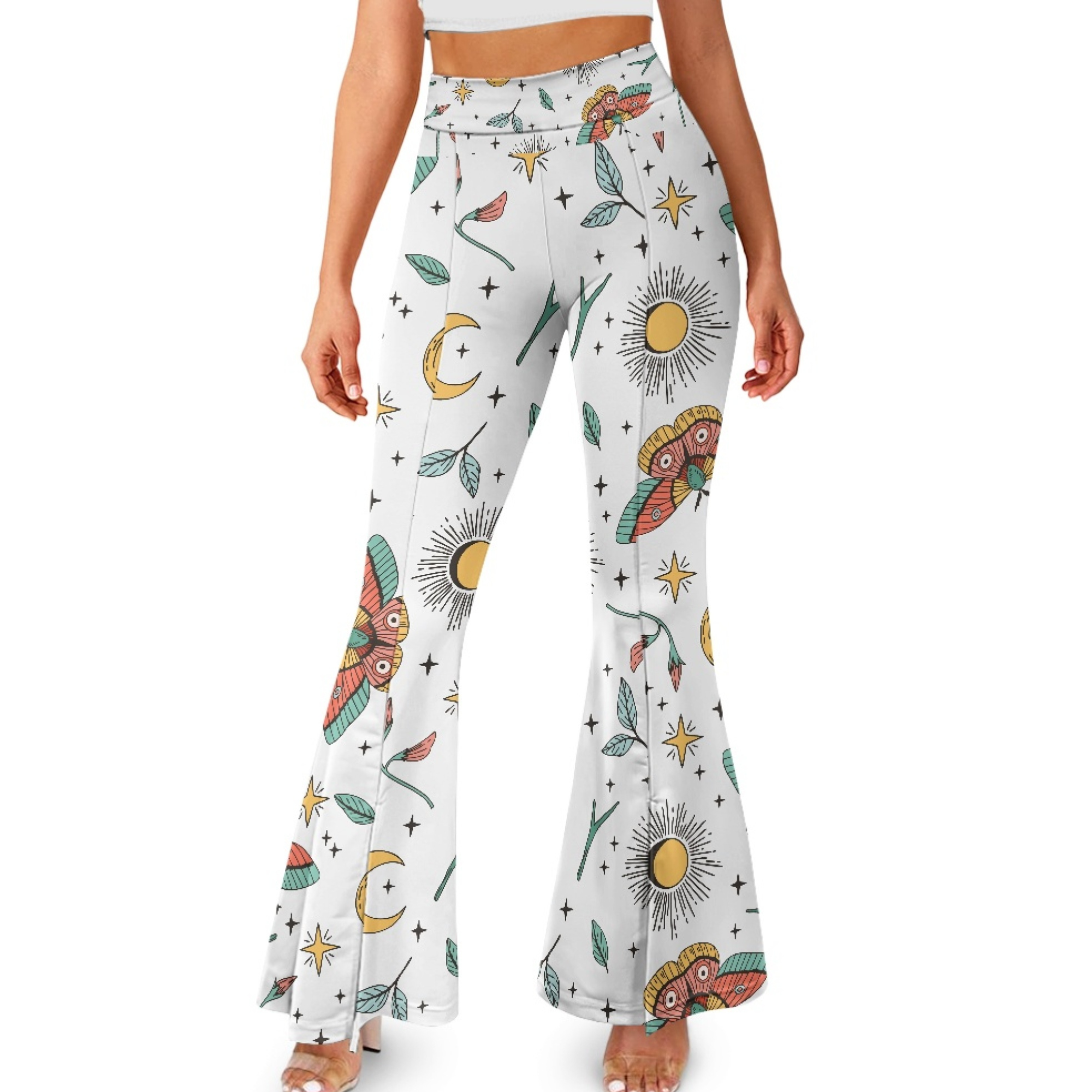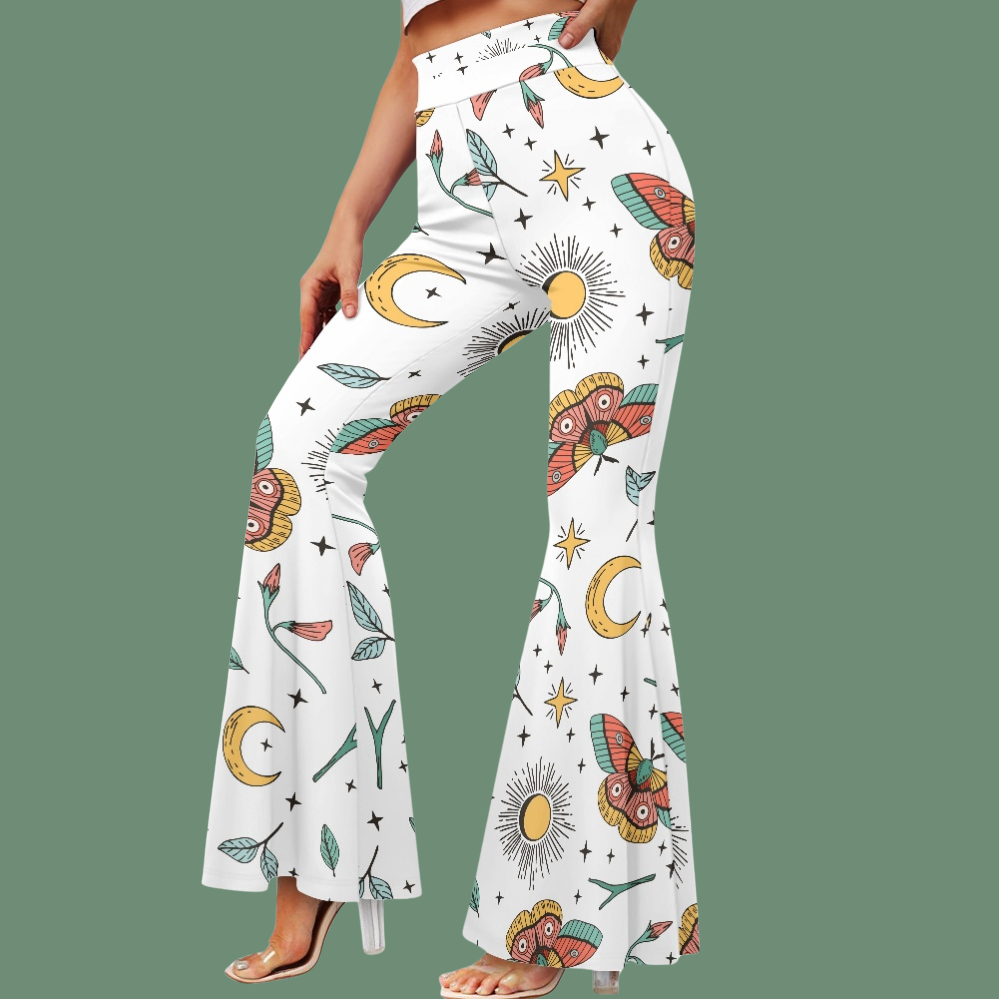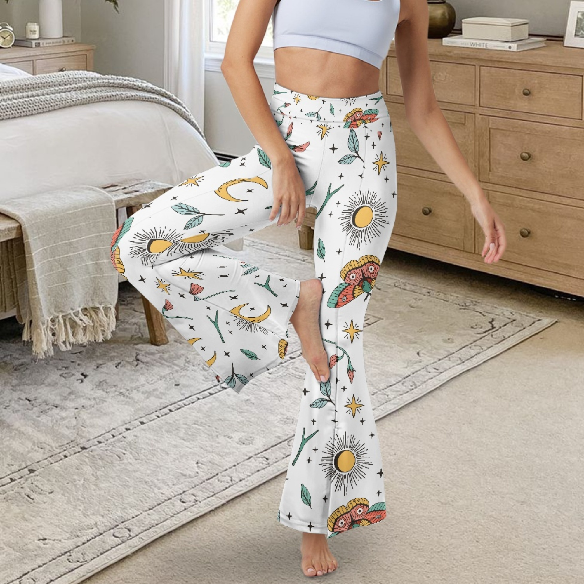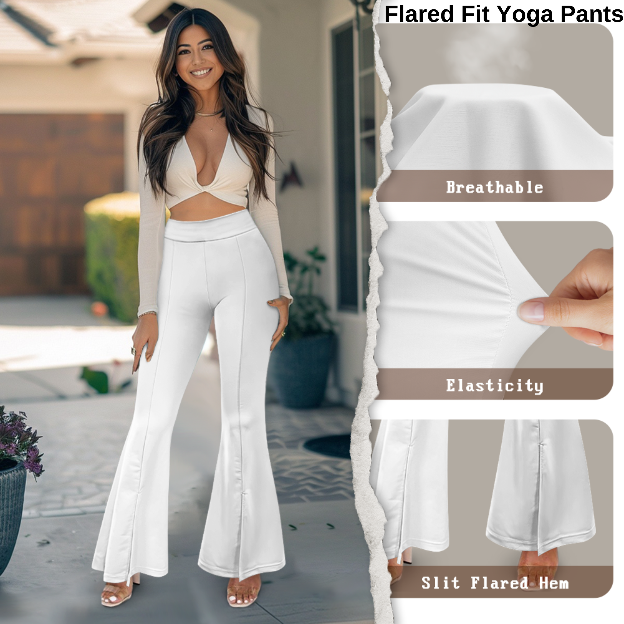 Boho Flared Yoga Pants – Slit or Classic Hem – High Waist Stretch Bell Bottoms