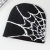 • Y2K Spider Web Knit Beanie – Streetwear Winter Hat, Black & White Unisex Skull Cap $24.85