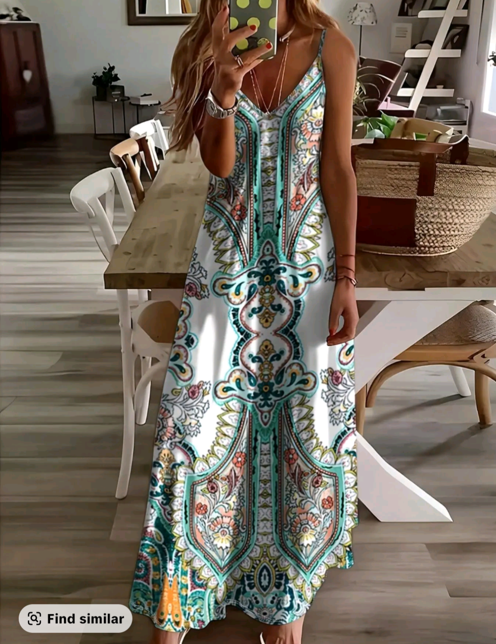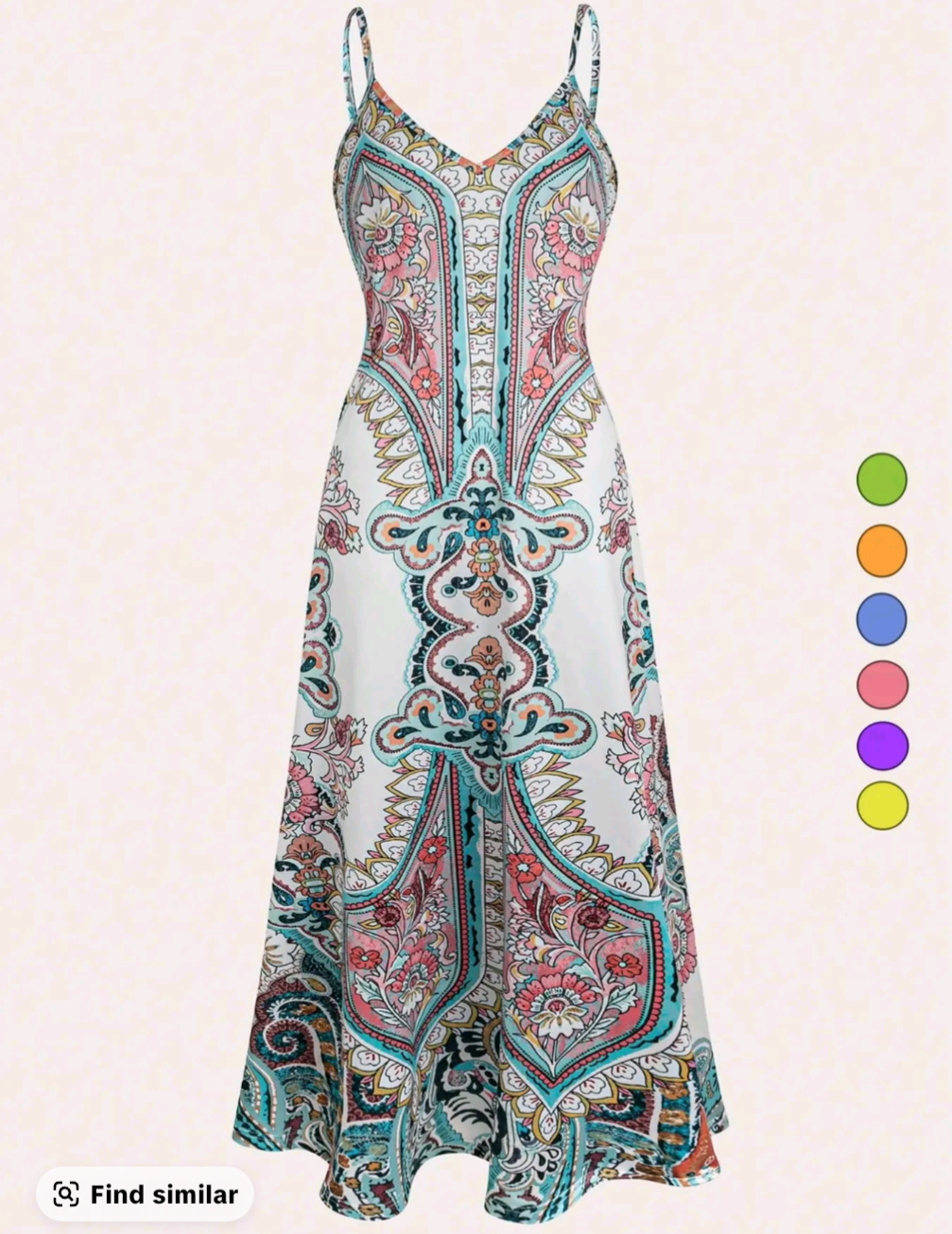 The elegant paisley design adds a unique vintage-inspired look while the lightweight fabric keeps you comfortable all day. Whether you’re heading to the beach, a summer party, or a casual day out, this maxi dress is a stylish and easy outfit choice.