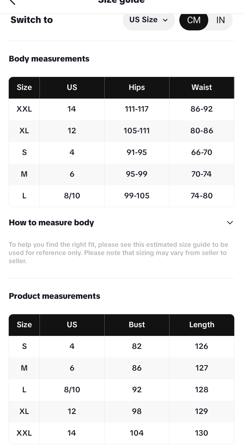 • Size Guide