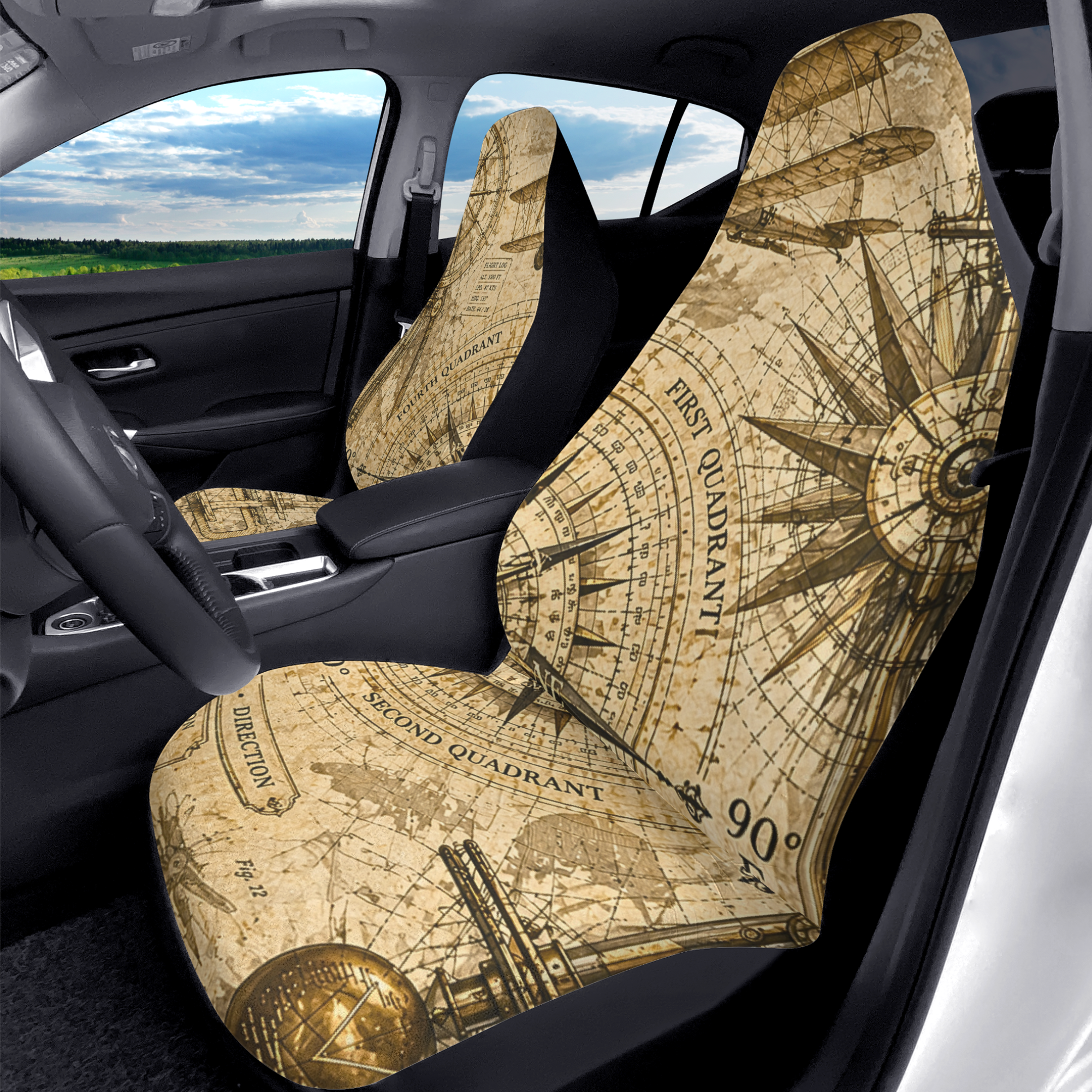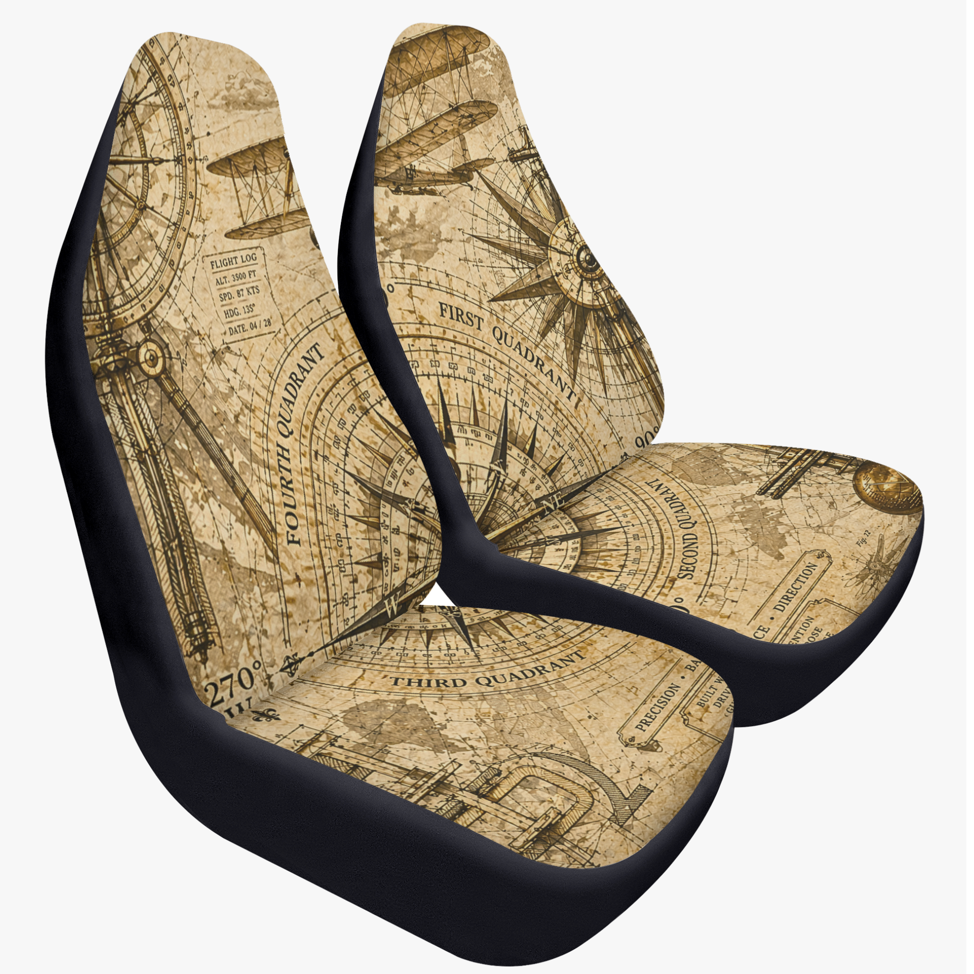 Compass and Flight Vintage Car Seat Cover – 2PCS (New)