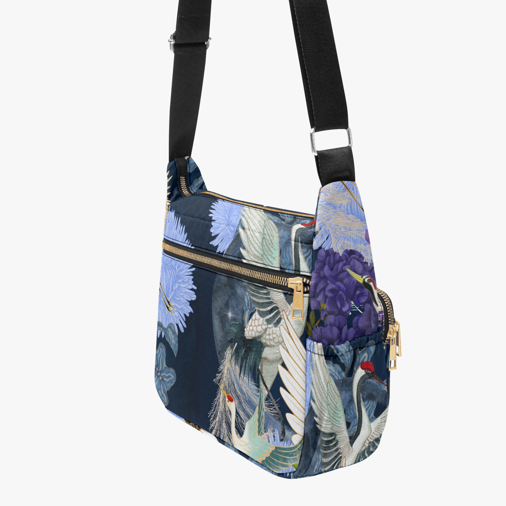 Cranes Blossom Multi-pocket Crossbody Bag Purse (New)