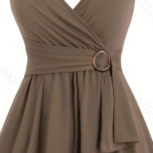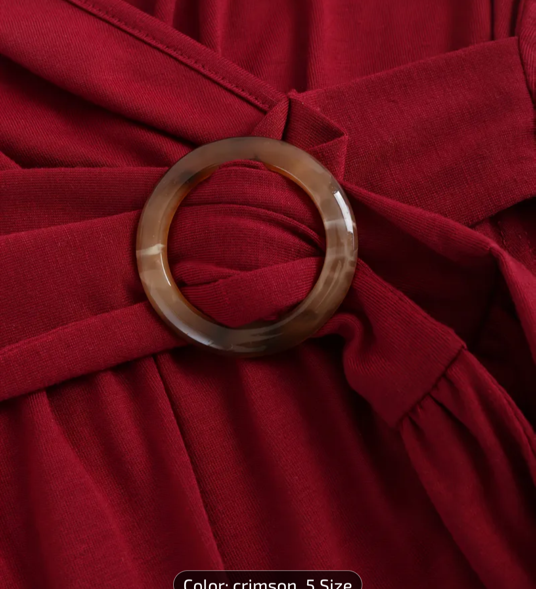 Made from soft stretch fabric, this dress is comfortable while still looking polished and refined. The waist detail with a decorative ring accent adds a sophisticated touch.