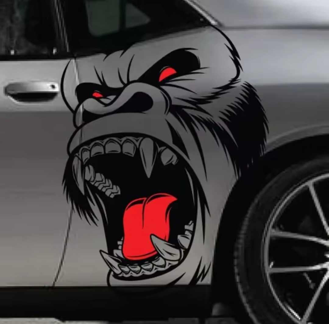 gorilla decal, king kong decal, car vinyl decal, suv truck decal, vehicle sticker, aggressive gorilla, monster car decal, truck window decal, hood vinyl graphic, animal car sticker, custom car decal