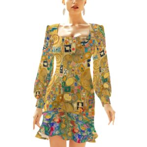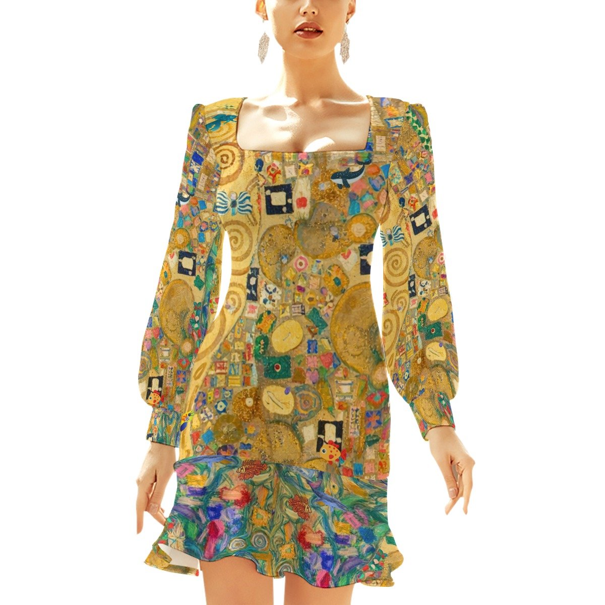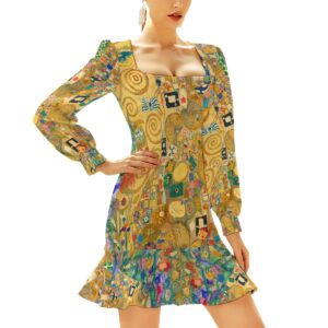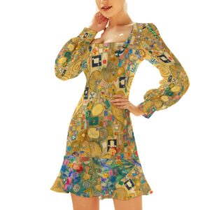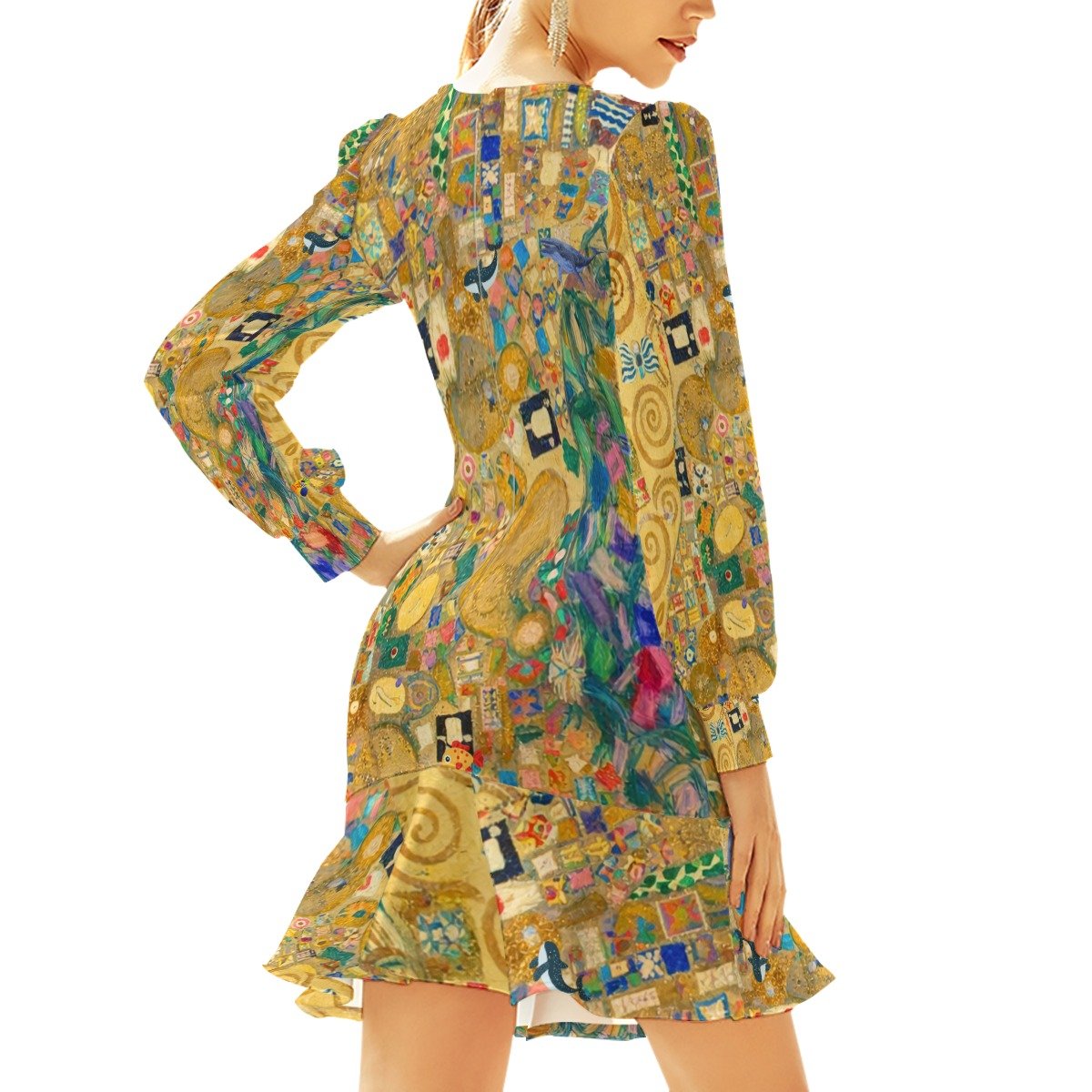 Gustav Klimt Women’s Ruffle Hem Skinny Dress / All Over Print (New)