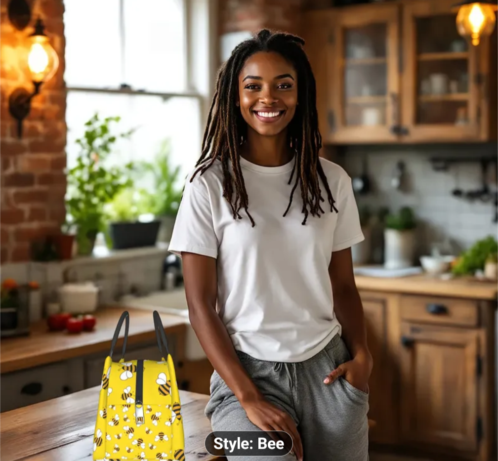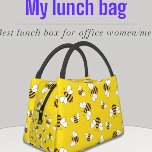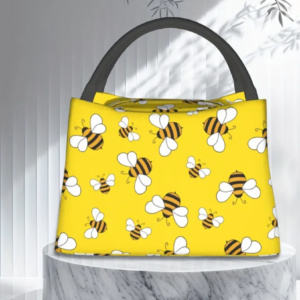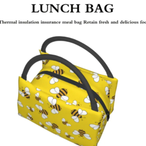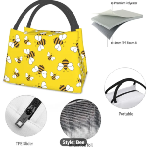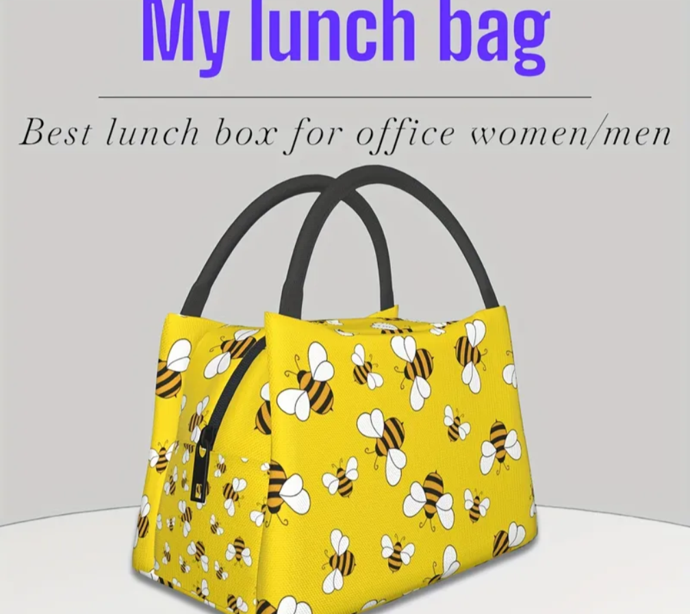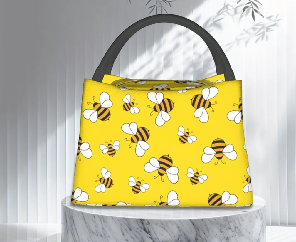Insulated Lunch Bag with Bee Design – Reusable, Polyester Tote for Work, Picnics & Travel Lunch Boxes, Bento Boxes
