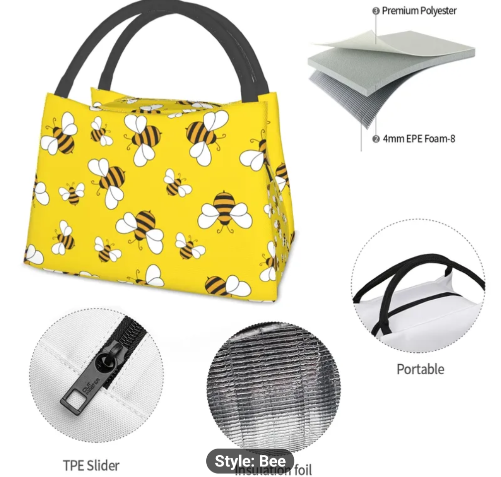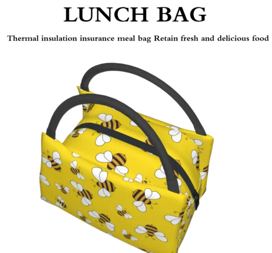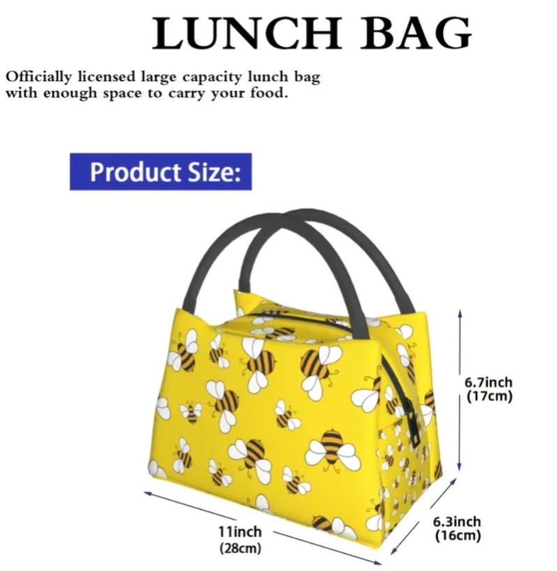 Insulated Lunch Bag with Bee Design – Reusable, Polyester Tote for Work, Picnics & Travel Lunch Boxes, Bento Boxes. Yonders.