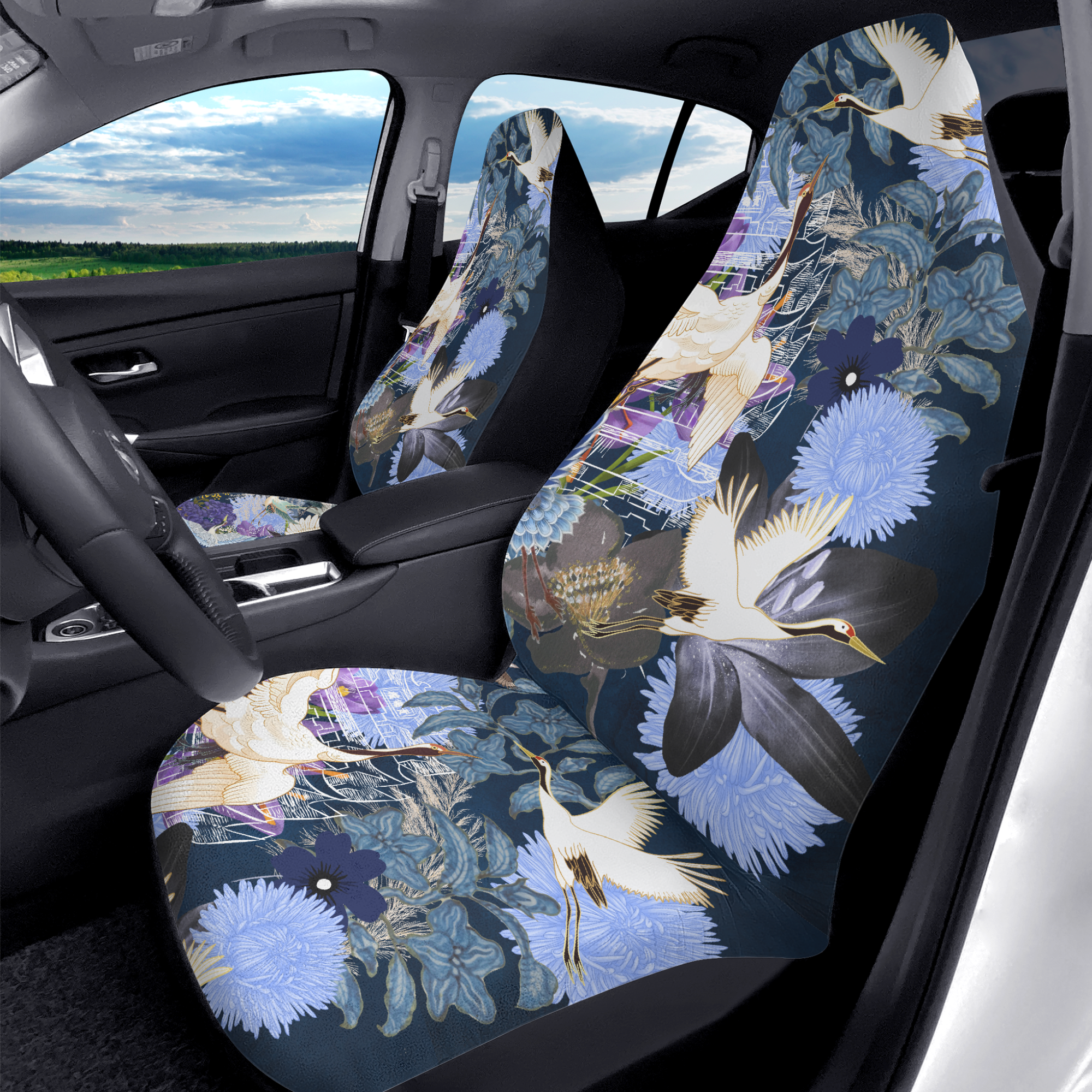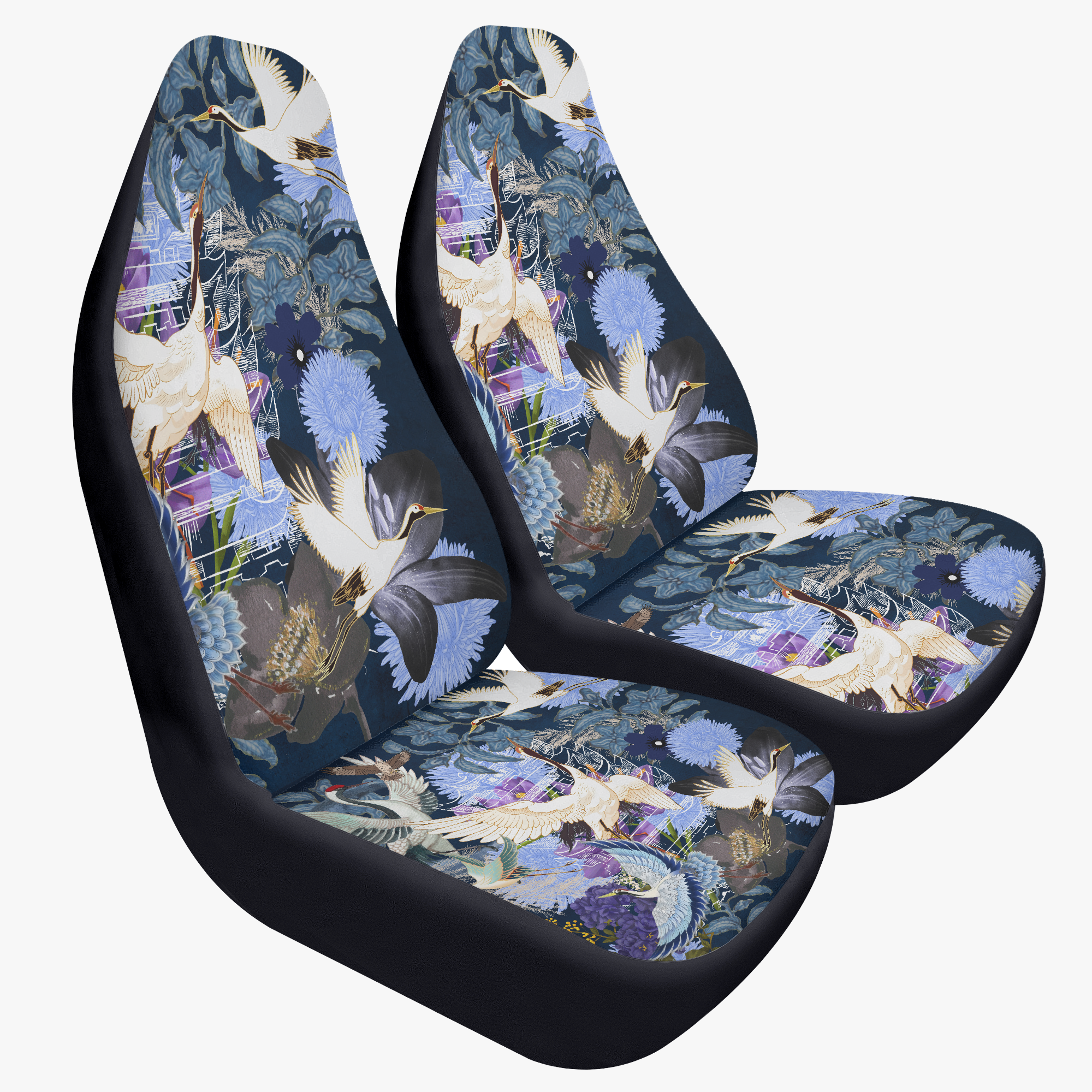 japanese car seat cover, crane seat cover, vintage car decor, oriental car accessory, asian bird design, crane pattern cover, 2pcs seat protector, japanese style gift, elegant auto decor, front seat covers, artistic car interior, bird print accessory, new car seat cover
