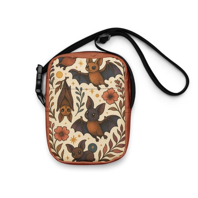 This Limited Edition Lucky 13 Bat Crossbody Bag is a magical must-have for spooky season and beyond. Featuring adorable bats in warm autumn tones surrounded by whimsical flowers and stars, this bag is the perfect mix of cute and vintage.