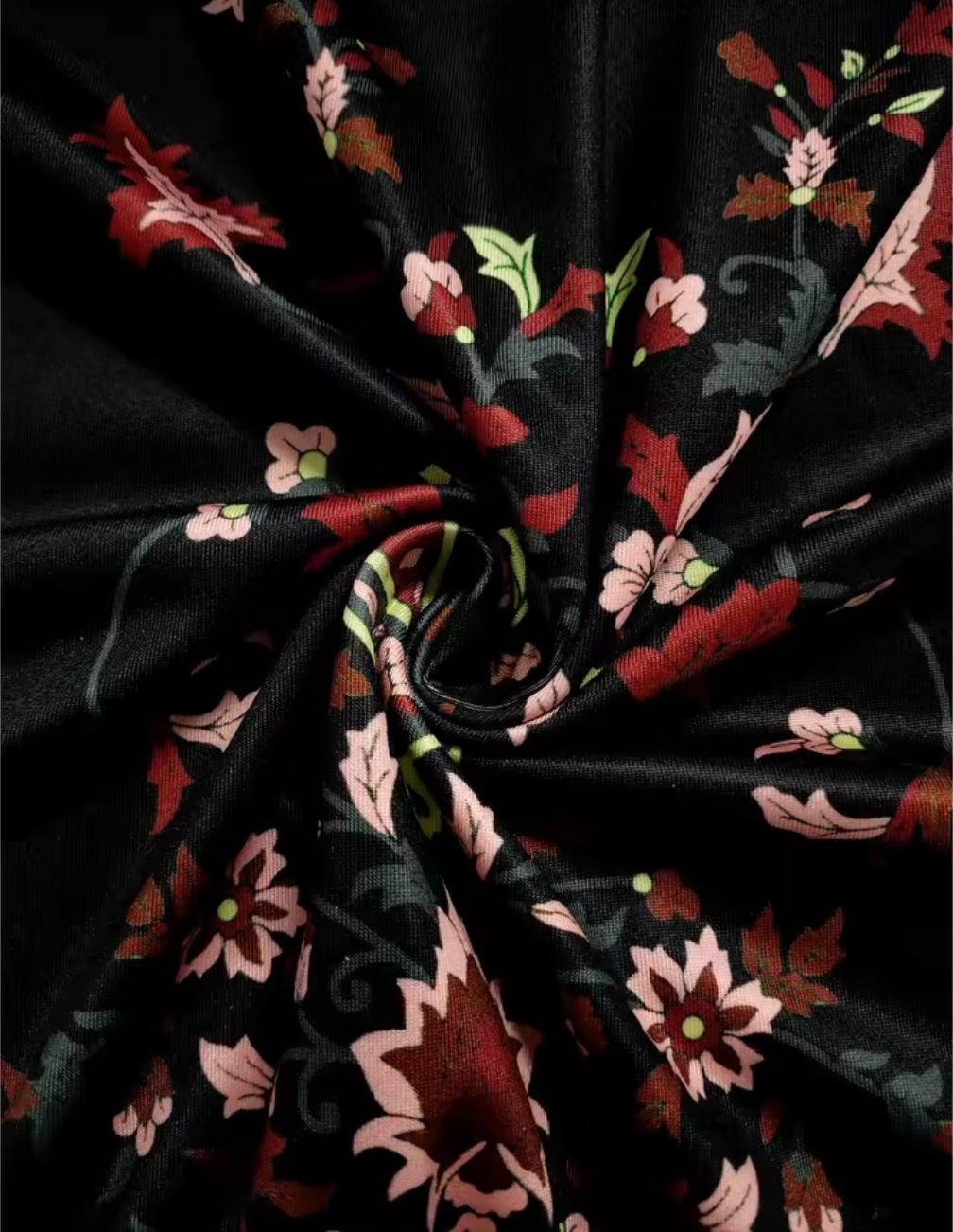 The rich ethnic floral print on a dark background creates a timeless, vintage-inspired look that stands out beautifully. Made from durable polyester, this dress is lightweight, easy to care for, and ideal for cooler seasons while still remaining breathable.Yonder