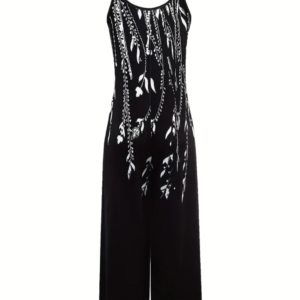 Plus Size, Women’s Fashion Floral Print Jumpsuit with Round Neck, Ruffled Pockets, Sleeveless Strap Jumpsuit, Wide-Leg Pants Plus Size Jumpsuit for Women. Yonders.