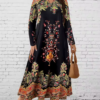 • Plus Size Boho Floral Maxi Dress, Long Sleeve V Neck Ethnic Print Dress, Vintage Bohemian Autumn Festival Dress, Casual Loose Fit $77.99