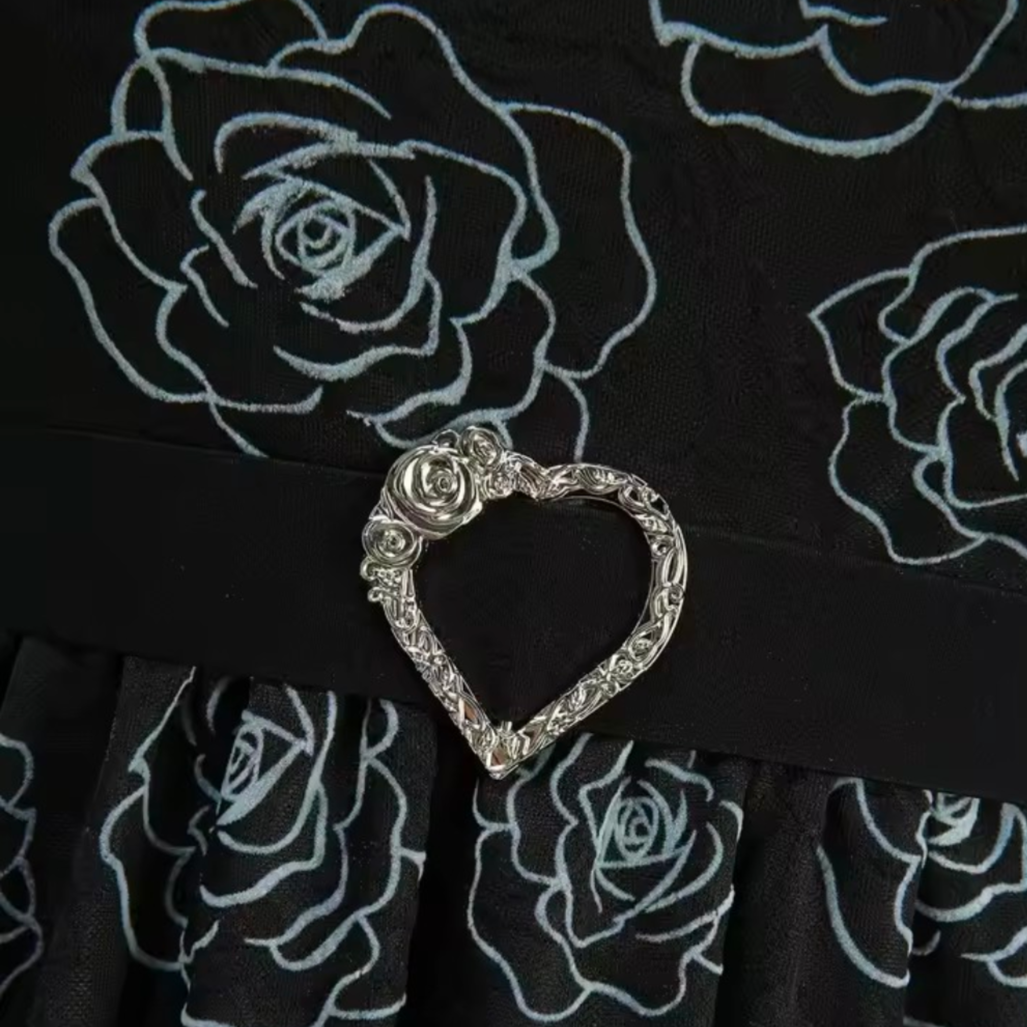 Rose Flower Flocking with Removable Belt Women’s Asymmetrical Maxi Dresses