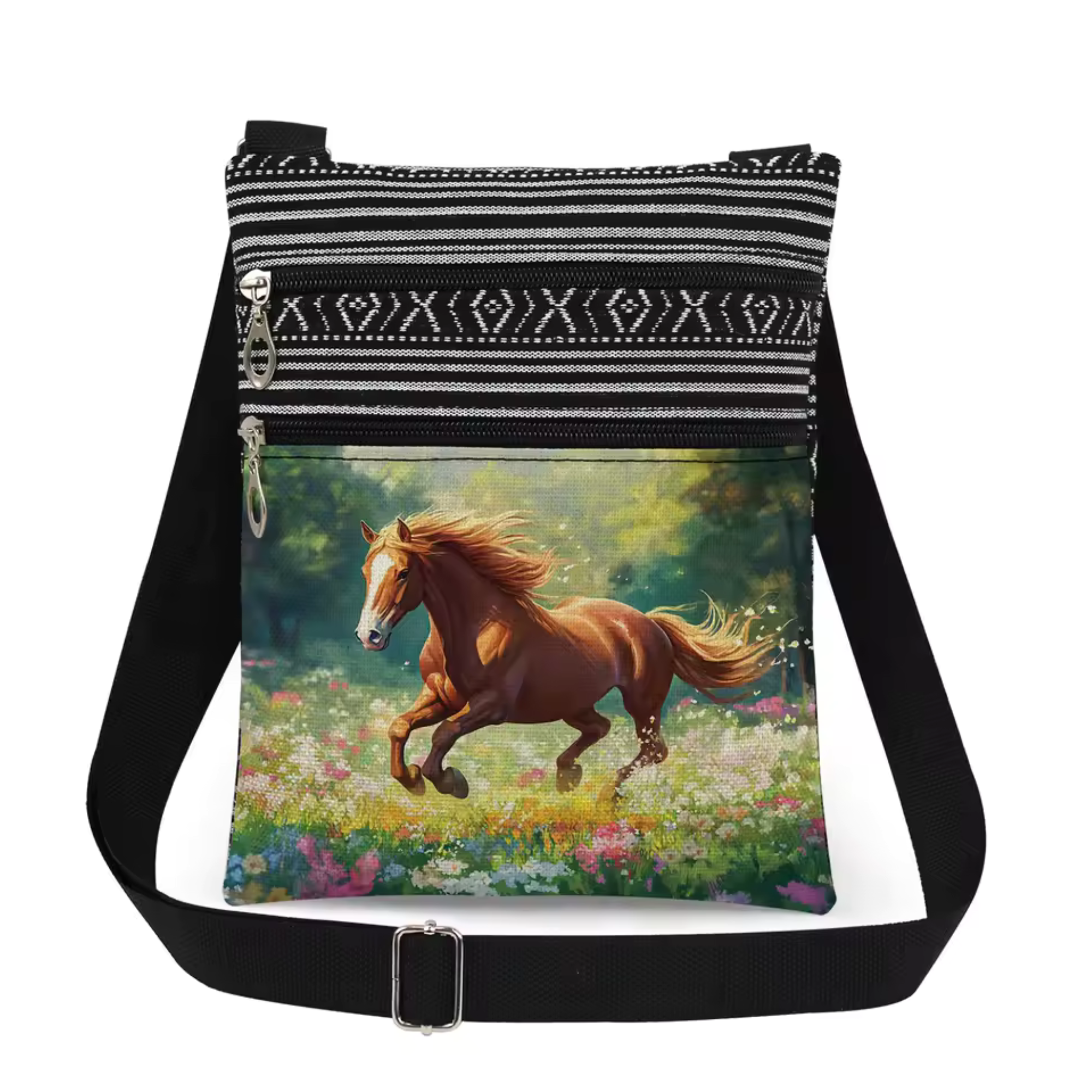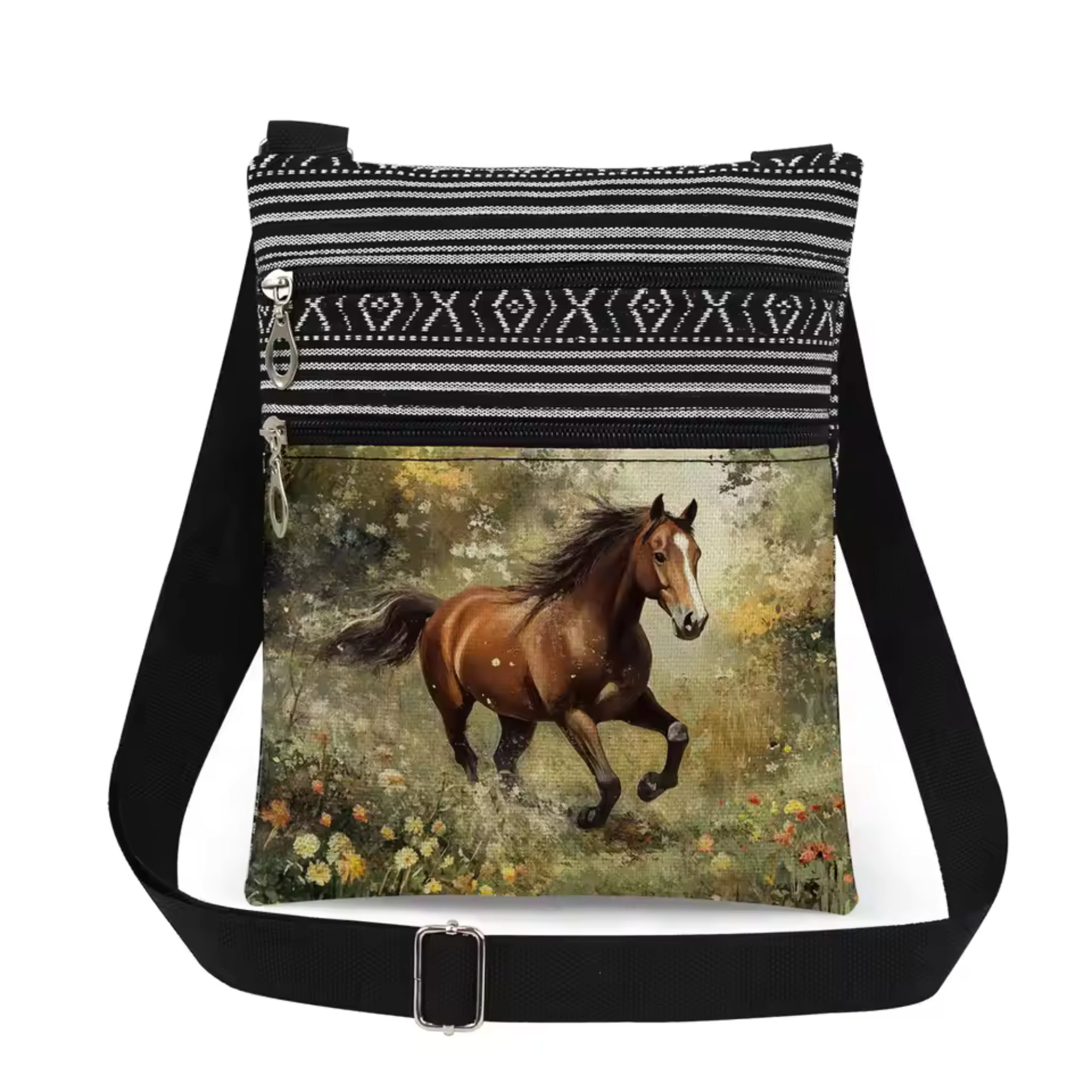 running horse bag, horse messenger bag, horse crossbody bag, western shoulder bag, horse lover gift, equestrian bag, animal print bag, rustic horse art, outdoor messenger bag, unisex crossbody bag, men shoulder bag, women crossbody bag, western fashion bag, travel satchel bag, nature art bag, cowboy style bag, horse print purse, equine accessory