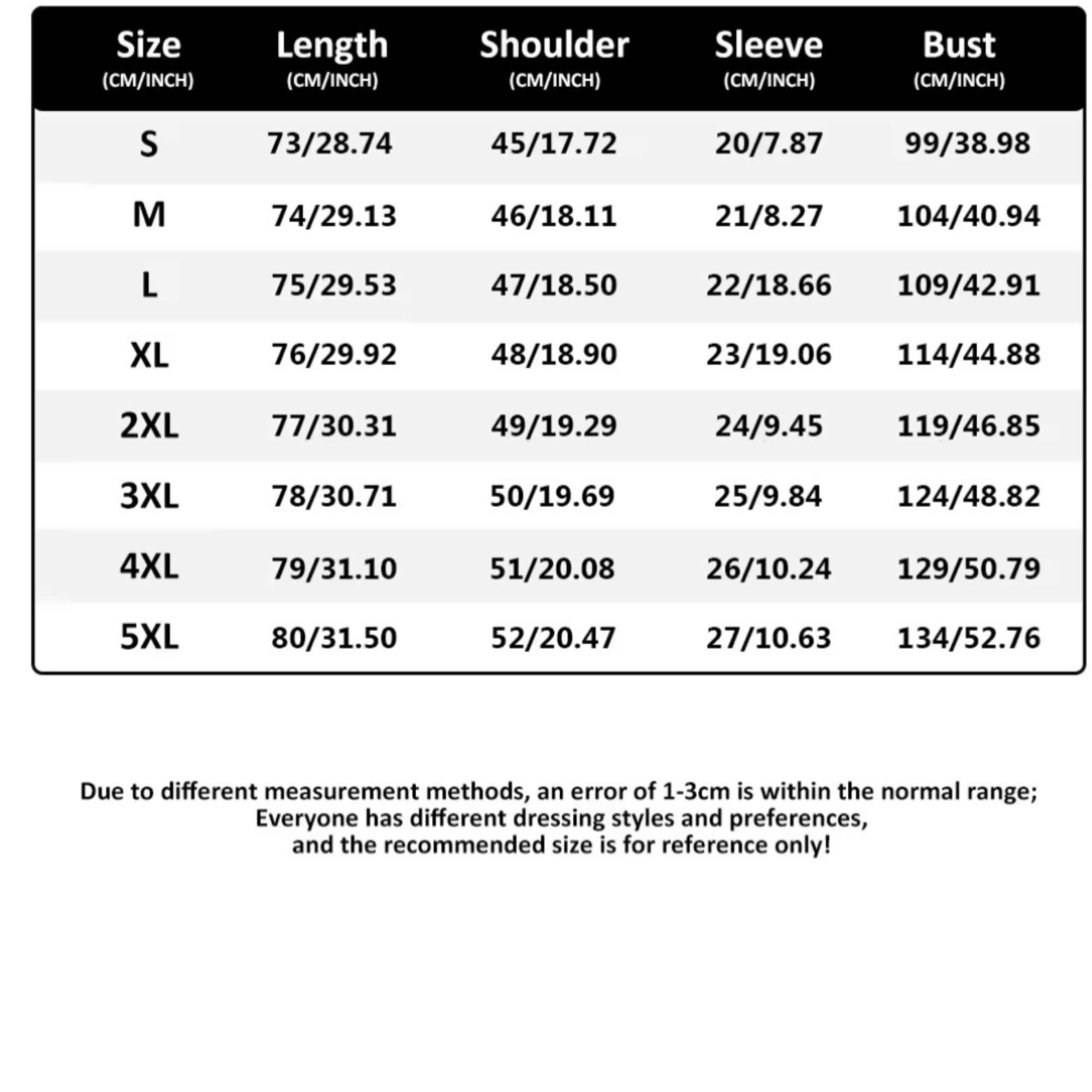 Asian Size:S,M,L,XL,2XL, 3XL,4XL,5XL Compared to the European