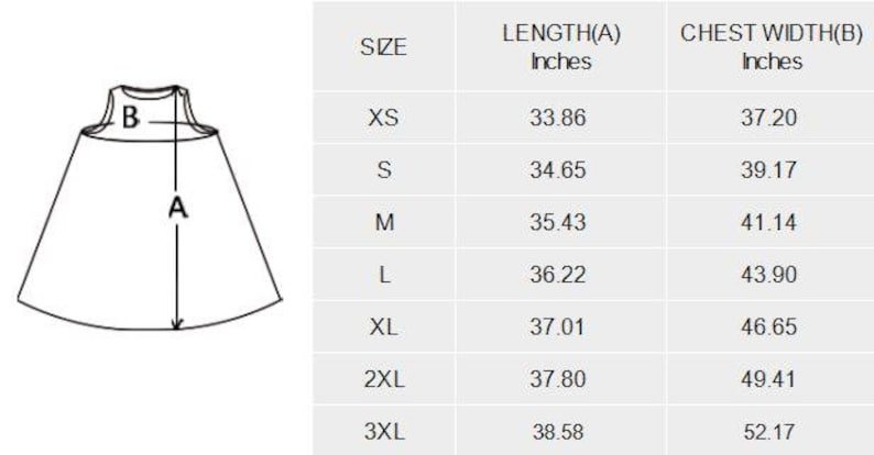 – Sizes: XS, S, M, L, XL, 2XL, 3XL. Please calculate your size from the measurement chart below.