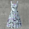 Celestial Bat Print Ruffle Dress – Moon & Stars A-Line Midi (New)