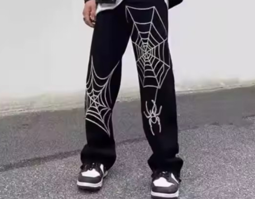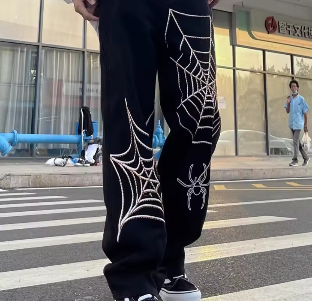 High-Street Spider Web Wide-Leg Pants (Unisex)