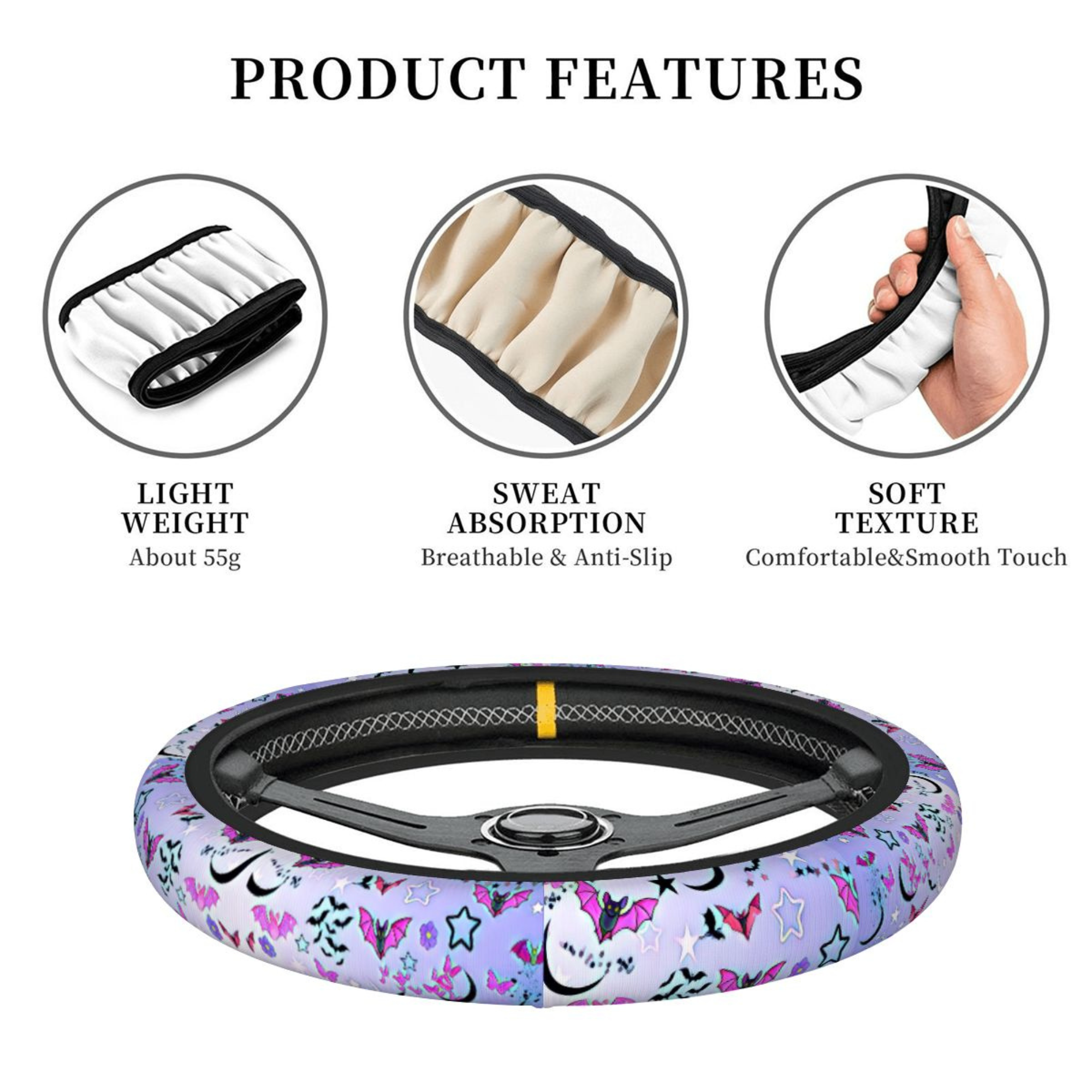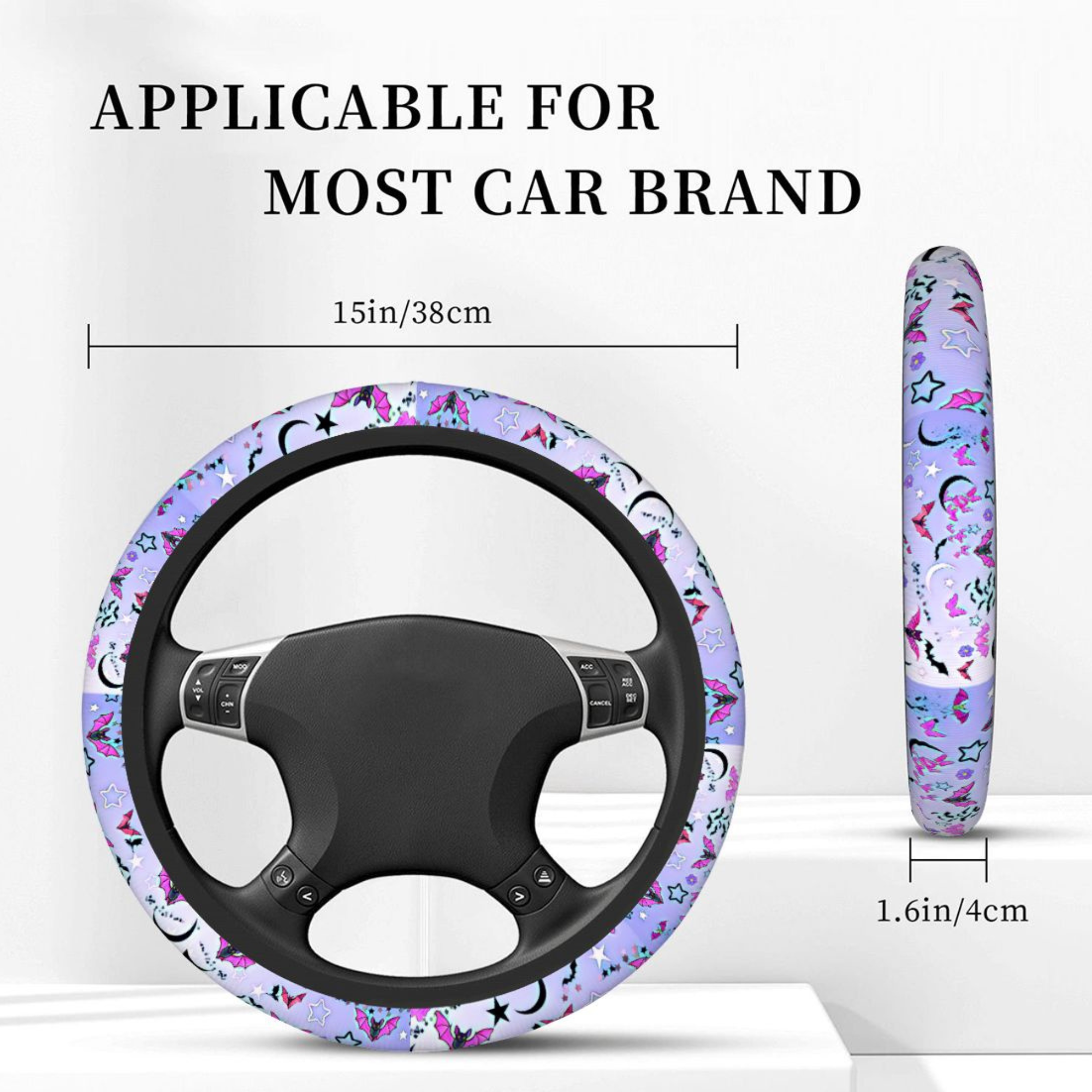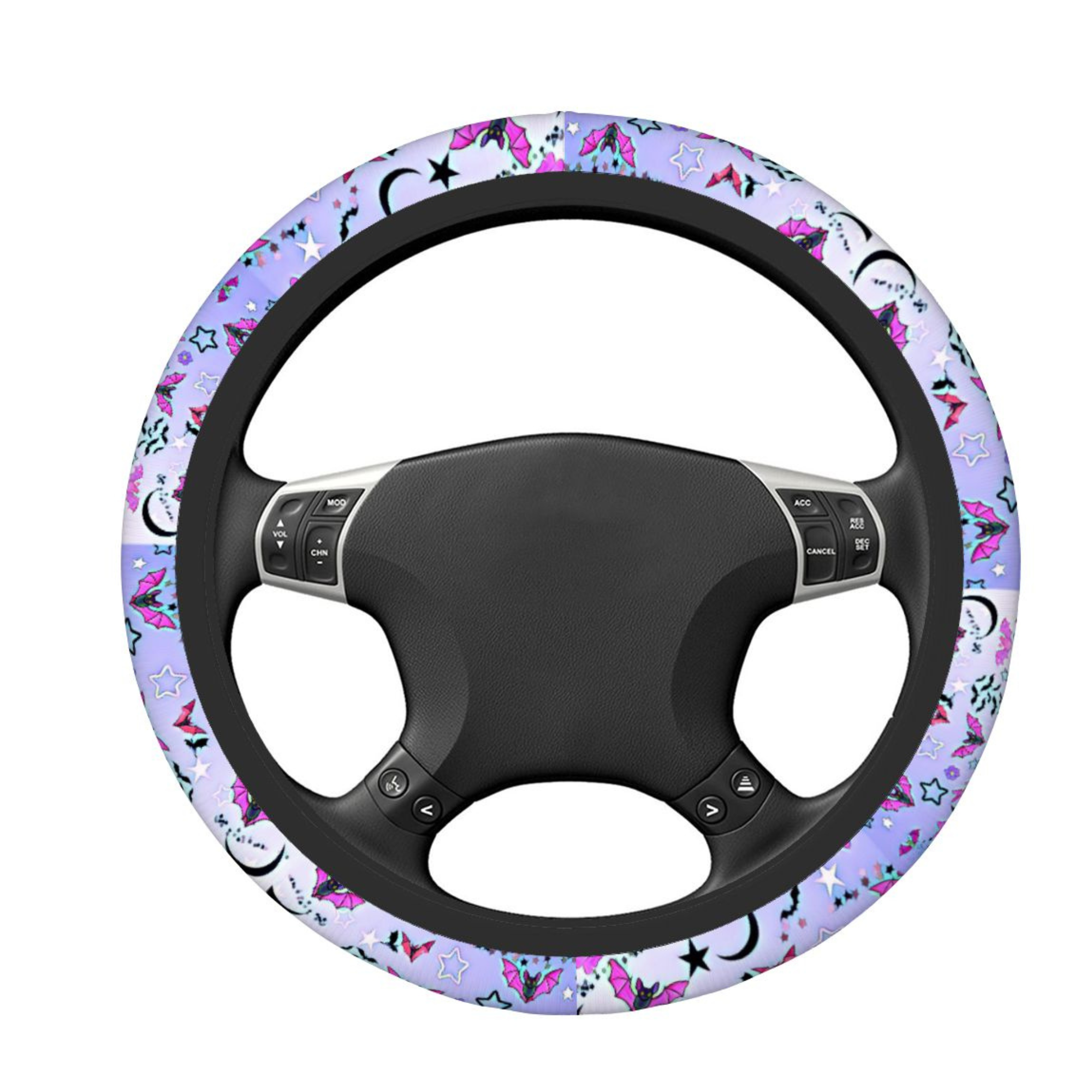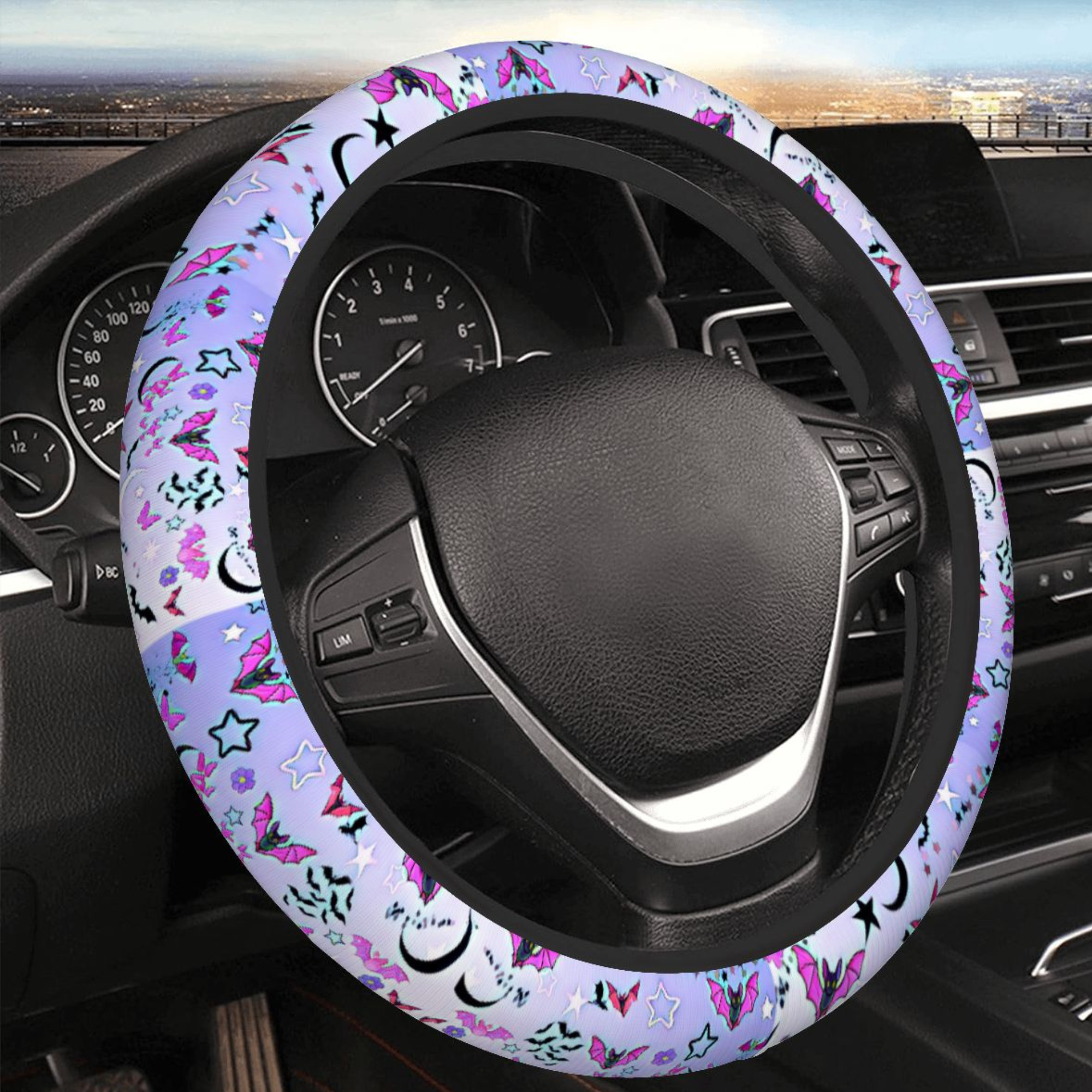 spooky car decor, bat steering cover, halloween car accessory, gothic car decor, cute bat aesthetic, pastel goth car, steering wheel cover, halloween gift idea, alt car accessories, purple car decor, spooky cute gift, universal wheel cover, witchy car decor, bat lover gift