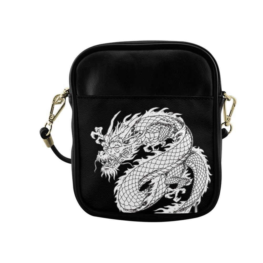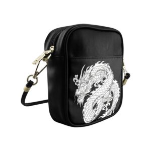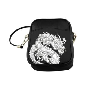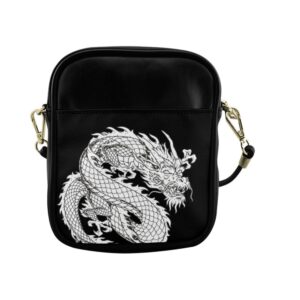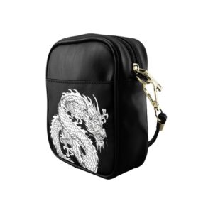Make a bold statement with this striking Black Dragon Crossbody Bag featuring a detailed white Asian dragon design on premium black PU leather.