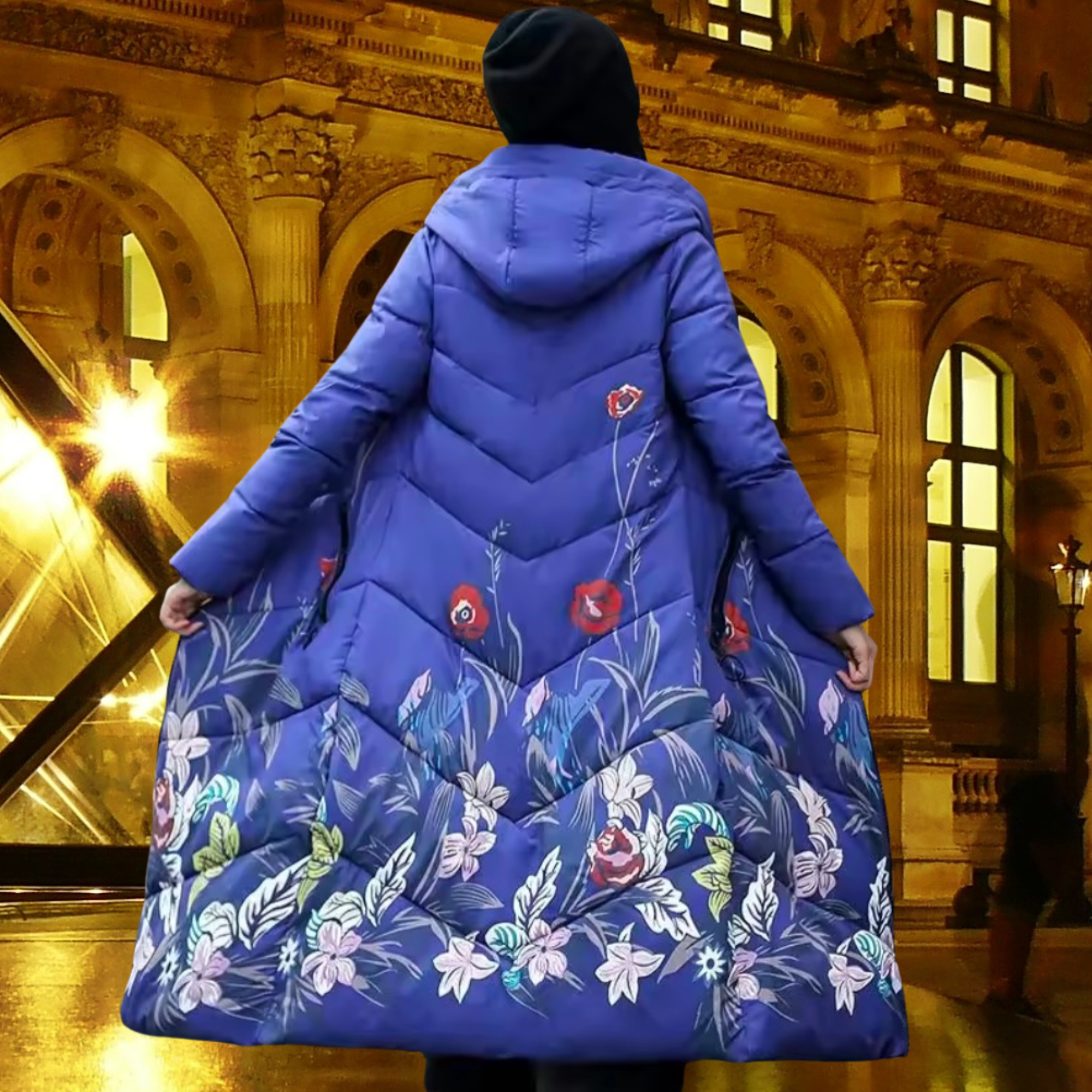 floral winter coat, long puffer jacket, hooded winter coat, women snow jacket, korean style coat, warm long parka, floral puffer coat, thick winter jacket, women long coat, padded winter coat, casual winter jacket, cozy snow coat, gift for her, canva, 2000px, pixel 6 screenshot, new Trendy