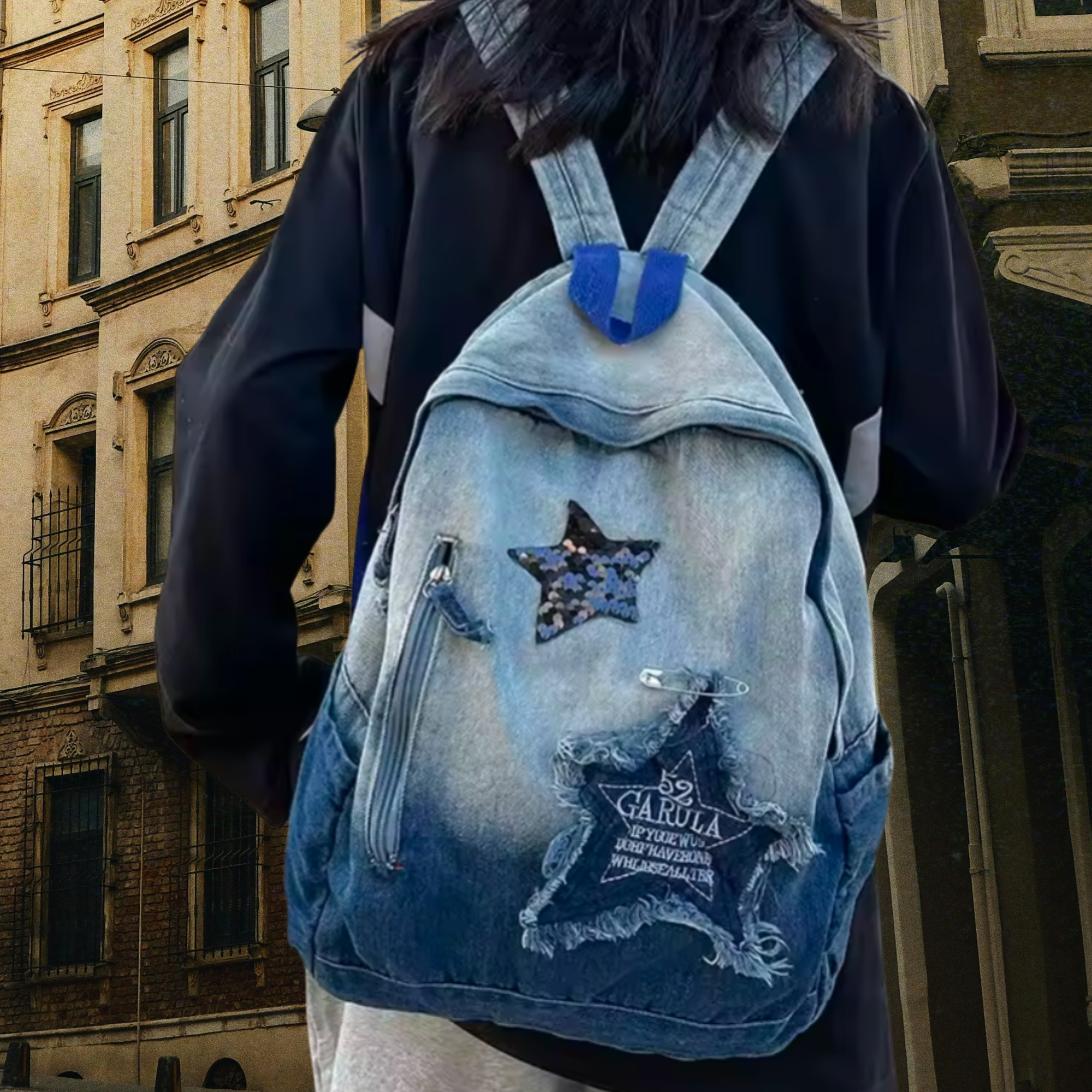 Give your style a nostalgic touch with this Vintage Denim Star Backpack. Made from soft washed denim with distressed star patches, this bag has a unique worn-in look that feels both retro and modern. The design is simple, casual, and full of character — perfect for anyone who loves vintage fashion. Yonder