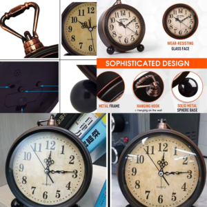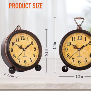 Spectacular Silent Table Desk Quartz Clock Time for bedroom , beside desk and shelf, Bring timeless charm into your home with this vintage-inspired alarm clock. Designed in a retro style, this piece isn’t just practical – it also makes a beautiful tabletop decoration for your bedroom, study, or living room.