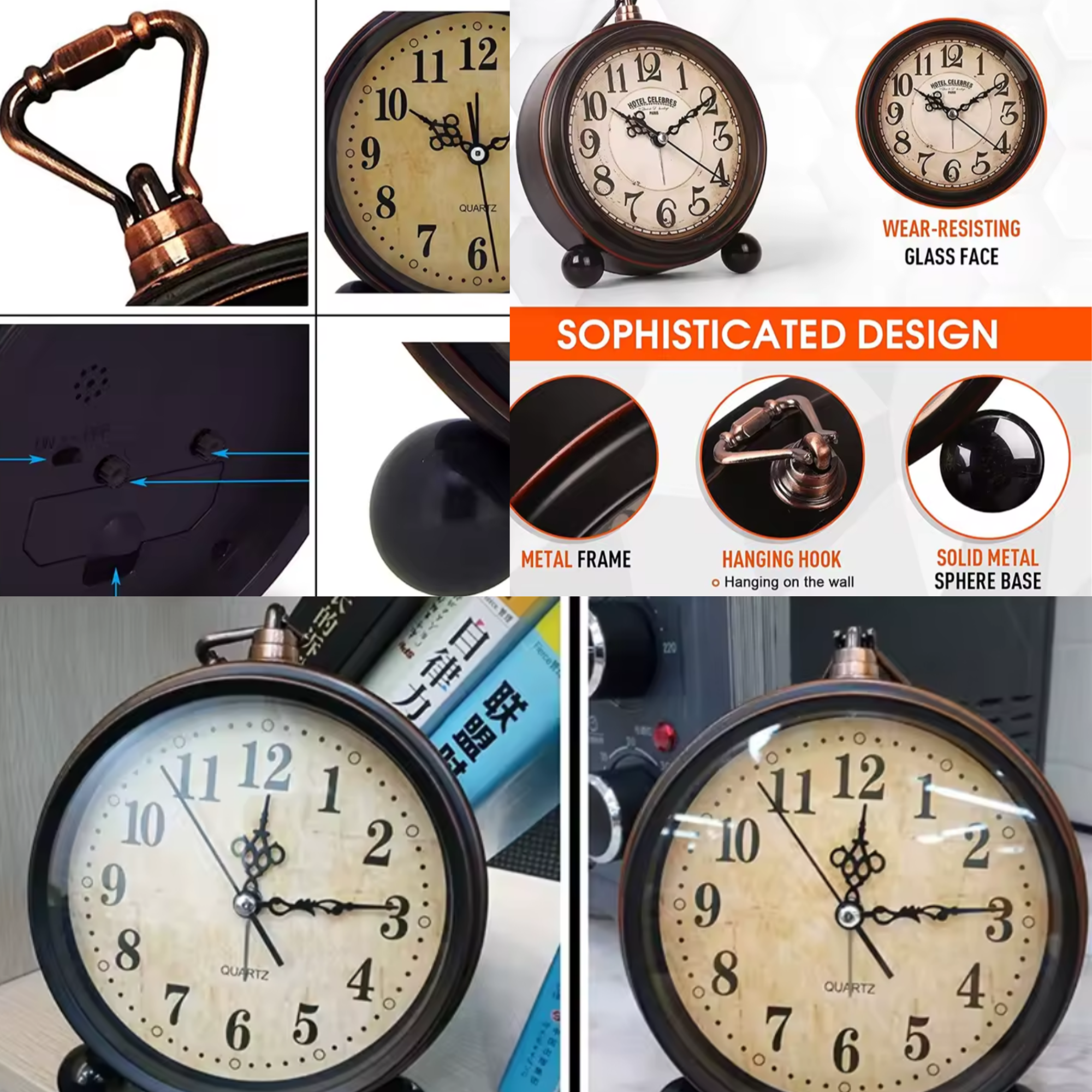 Vintage Hangable Battery Alarm Metal Clock – Silent, Battery Operated, Stylish Table Clock ✨