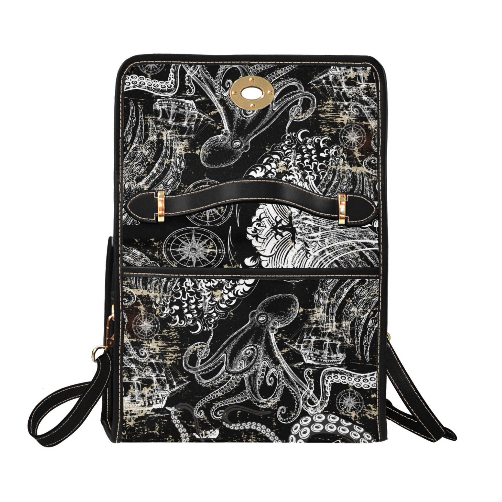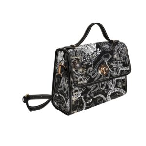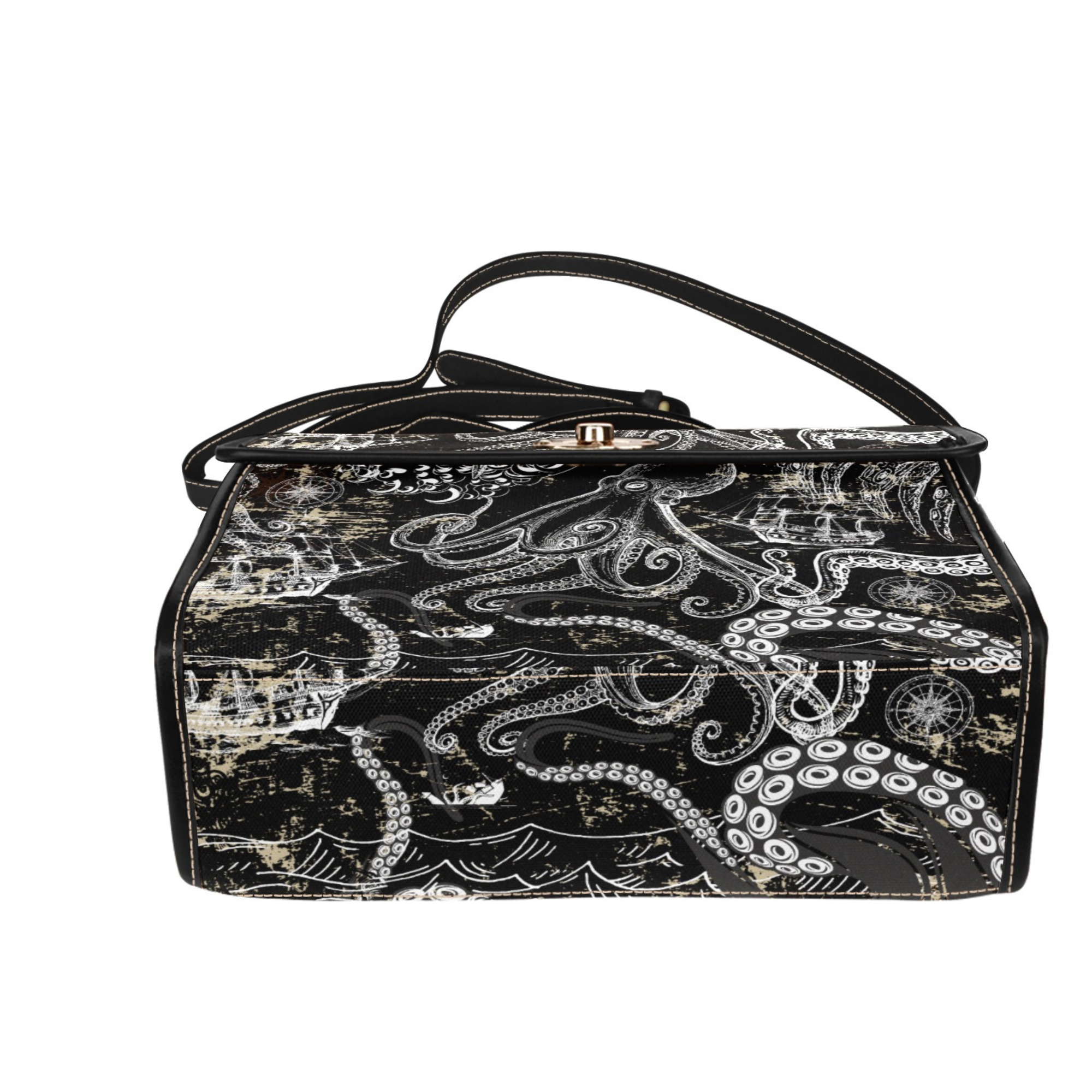 This Vintage Kraken Crossbody Bag features an intricate black-and-ivory octopus design inspired by old maritime maps,2000to6000, moved, resized, 288dpi, 14mb