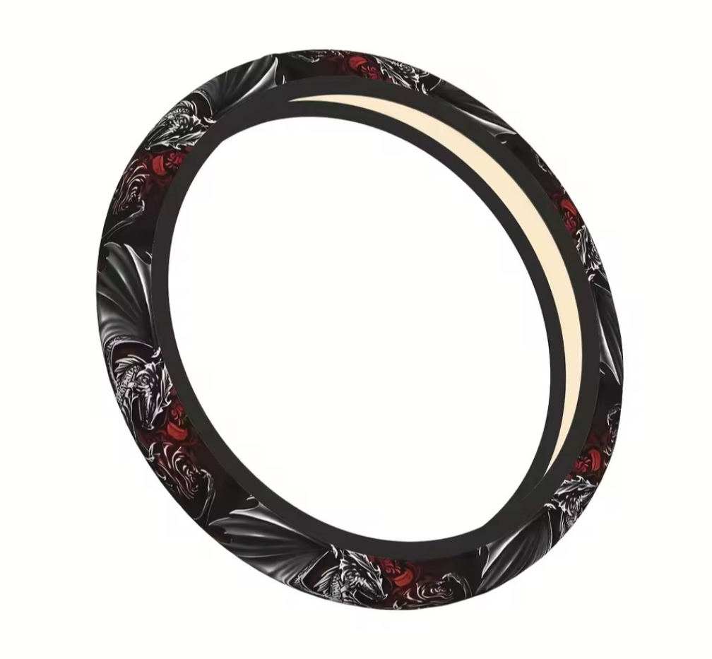 Vintage Silver Dragon Neoprene Steering Wheel Cover