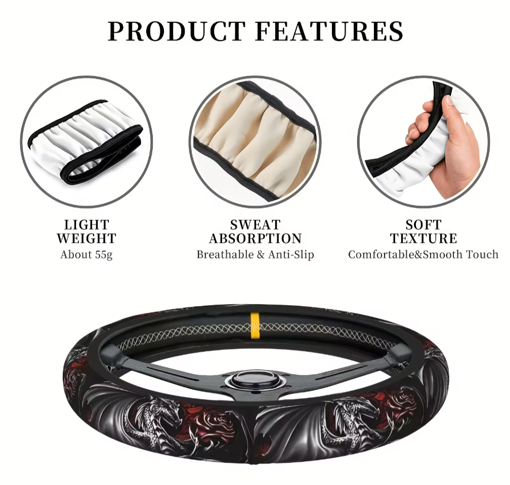 Tags: Dragon Wheel, Steering wheel cover, Car cover, Silver Dragon, Vibrant Dragon, Car accessories, Jupitar Blue Design