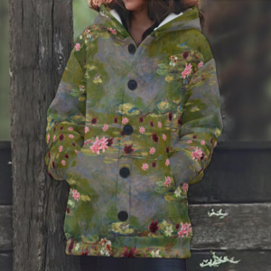 Wrap yourself in art and comfort with this Water Lilies Hooded Jacket, inspired by the serene beauty of Claude Monet’s iconic garden paintings. Featuring soft, flowing floral patterns and dreamy colors, this jacket captures the peaceful movement of water and light, blending wearable art with cozy everyday style.