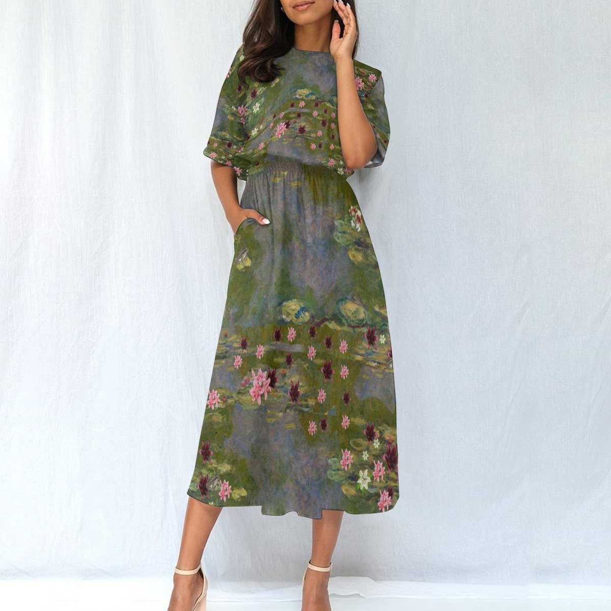 Water Lilies Women’s Waist Dress, inspired by the peaceful beauty of Monet’s (START🏀