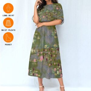 Designed to flatter, the elastic waist gently shapes your figure while the lightweight, breathable fabric keeps you comfortable all day. The high-quality print captures the dreamy movement and delicate tones of the Water Lilies, making this dress a beautiful choice for art lovers, nature enthusiasts, and anyone who appreciates vintage-inspired style. Yonpod