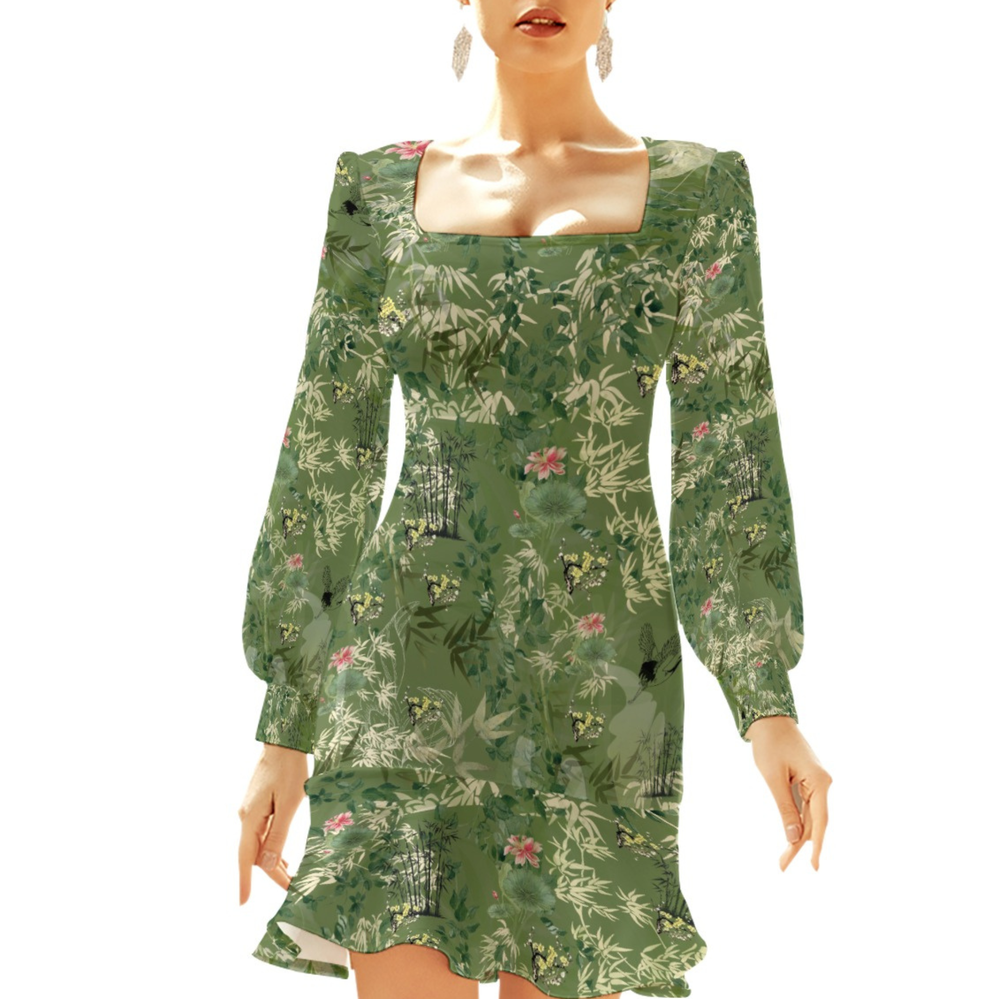 dress, date night dress, party mini dress, elegant casual dress, stretchy dress women, fitted floral dress, modern chic dress, everyday womens dress, gift for her dress, green botanical dress, ruffle hem dress, floral print dress, nature pattern dress, garden style dress, long sleeve mini dress, square neck dress, cottagecore dress, boho floral dress, slim fit dress, women skinny dress, botanical print outfit, spring summer dress, vintage garden dress, art print dress, green floral mini, elegant casual dress, 1200 mockup to Canva 2000 mockup, no move or Resize, 4000 to 8500, 57mb, 204dpi