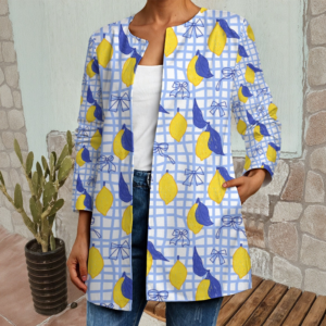 All Over Print Lemon Seamless Women’s Faux Sweater Cardigan(New)